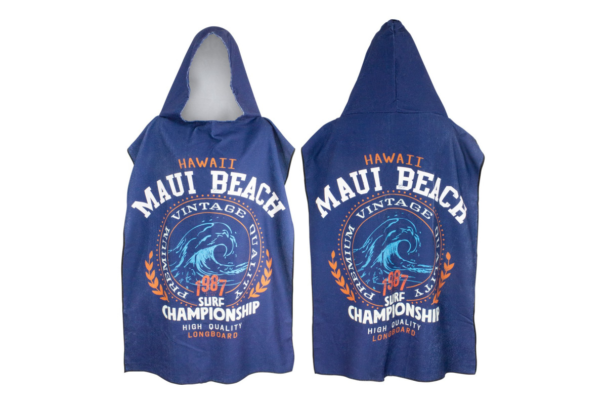 Adult size hooded towel which is ideal for staying warm and dry after swimming or at the beach. It is manufactured from soft 250gsm microfibre and can be branded on one side with edge-to-edge full colour print. There is a choice of eight overlocking thread colours. A production lead time of 30 working days applies to this product by air freight and larger orders can be sea freighted on request to reduce the freight cost.
