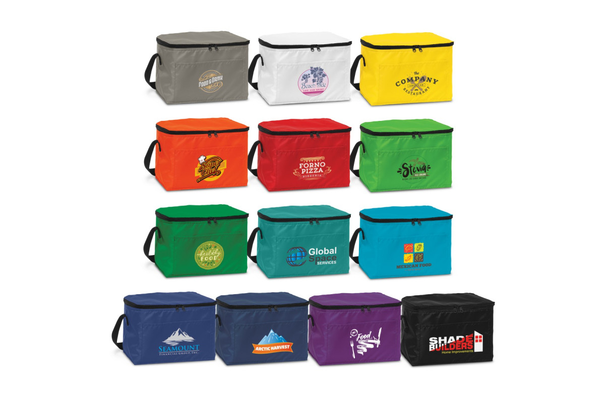 Small 4.2L cooler bag which is manufactured from 210D polyester. It has aluminium foil laminated PE foam insulation and a woven carry handle. Other features include a zippered top closure and a handy slip pocket on the front.