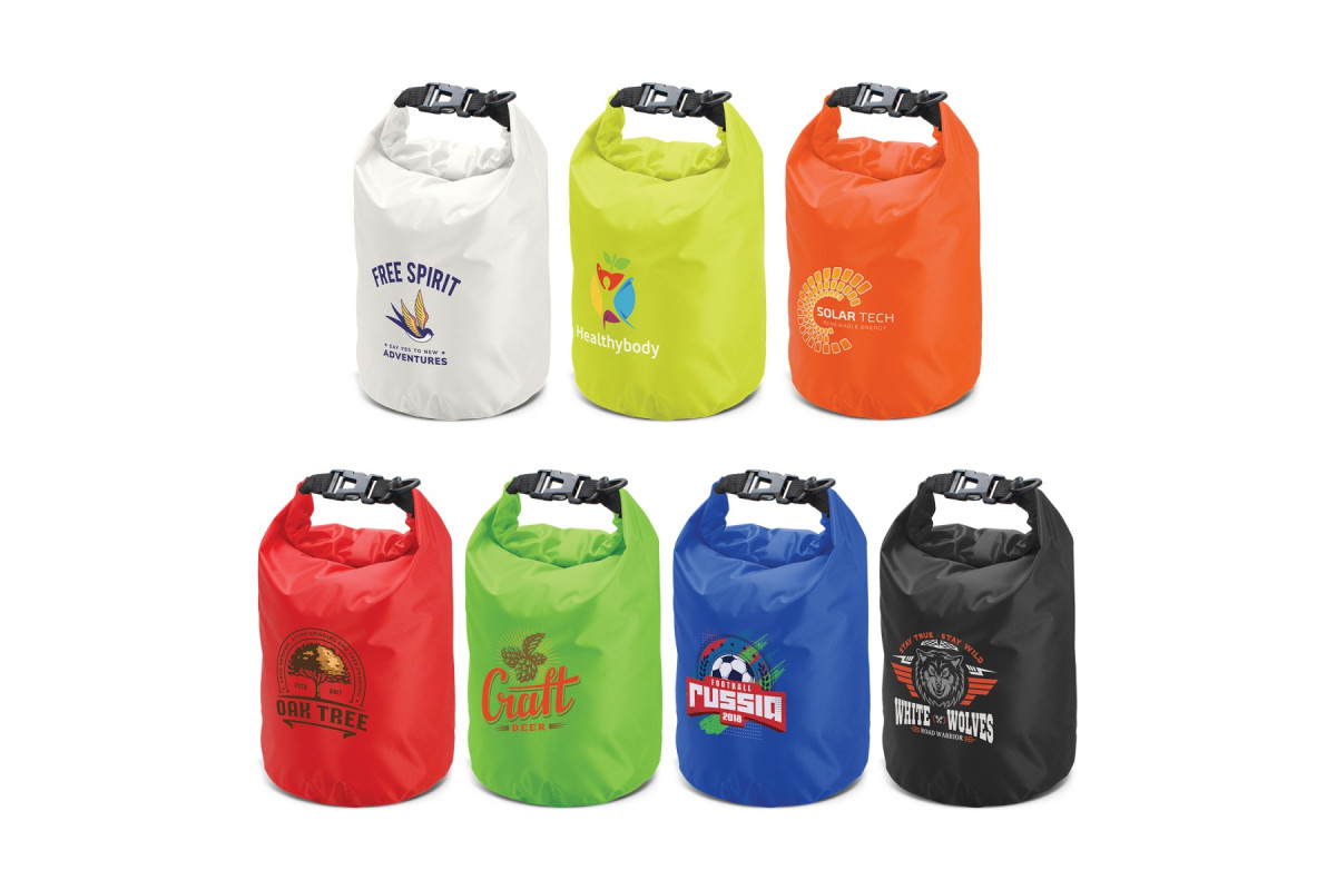 Dry bag with heat-sealed water-resistant seams. It is manufactured from robust 210T laminated nylon grid cloth. Simply roll down the top closure several times and close it with the snap lock for a water-resistant seal. It is ideal for storing valuables and electronic devices in the outdoors and around water.