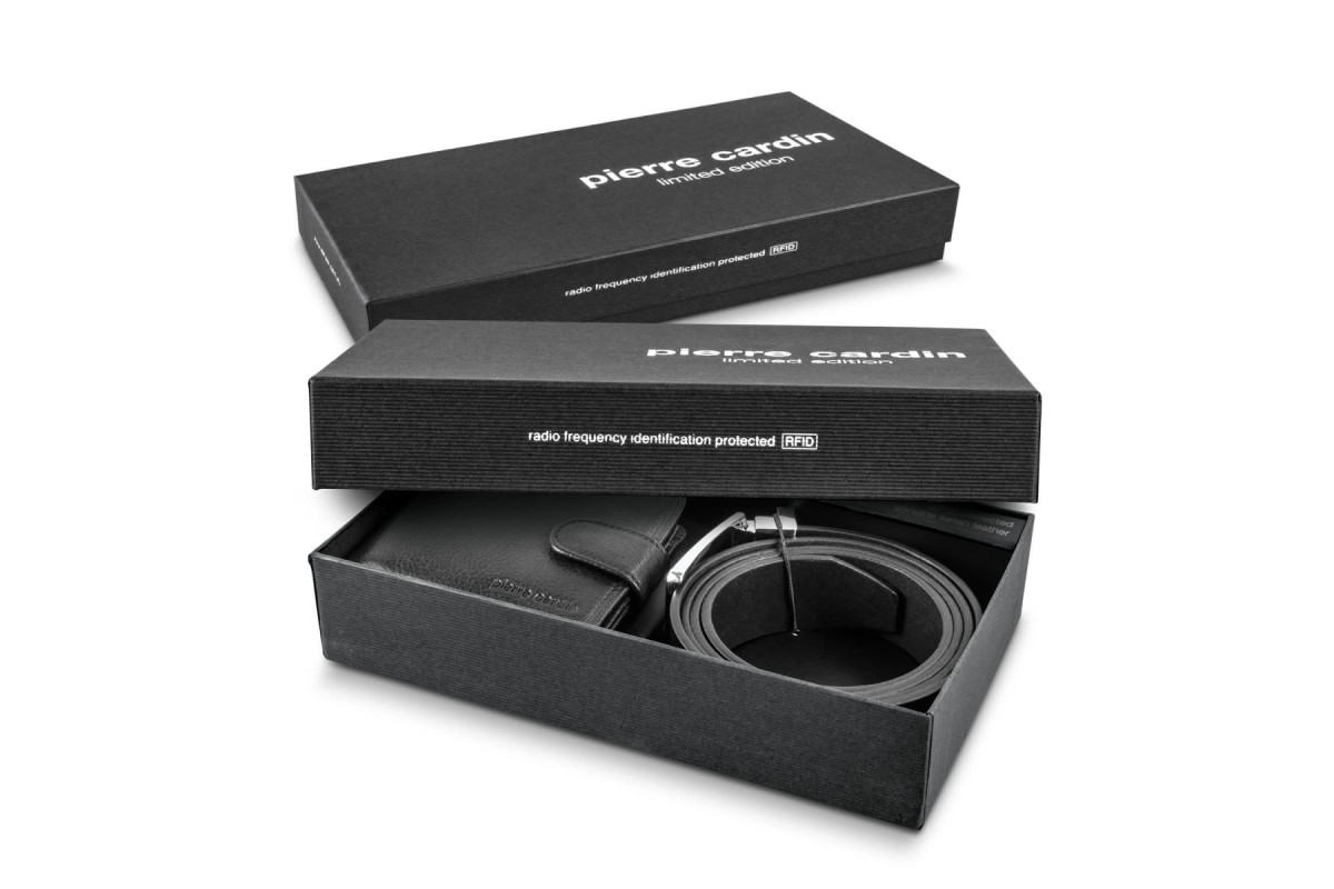 This premium Italian leather Pierre Cardin wallet and belt set makes an exceptional gift. The versatile soft leather wallet features 10+ card holders, a note pocket and has a flip closure to keep contents safe with RFID protection. The Italian leather belt has a metal buckle and is one size fits most. Presented in a black and red Pierre Cardin Gift box. The Pierre Cardin logo is on the front of the wallet and on the metal buckle of the belt. Features: * Premium Italian leather Pierre Cardin wallet and belt set * Features 10+ card holders, a note pocket and a flip closure * RFID protection * The Italian leather belt has a metal buckle and is one size fits most * Presented in a black and red Pierre Cardin Gift box
