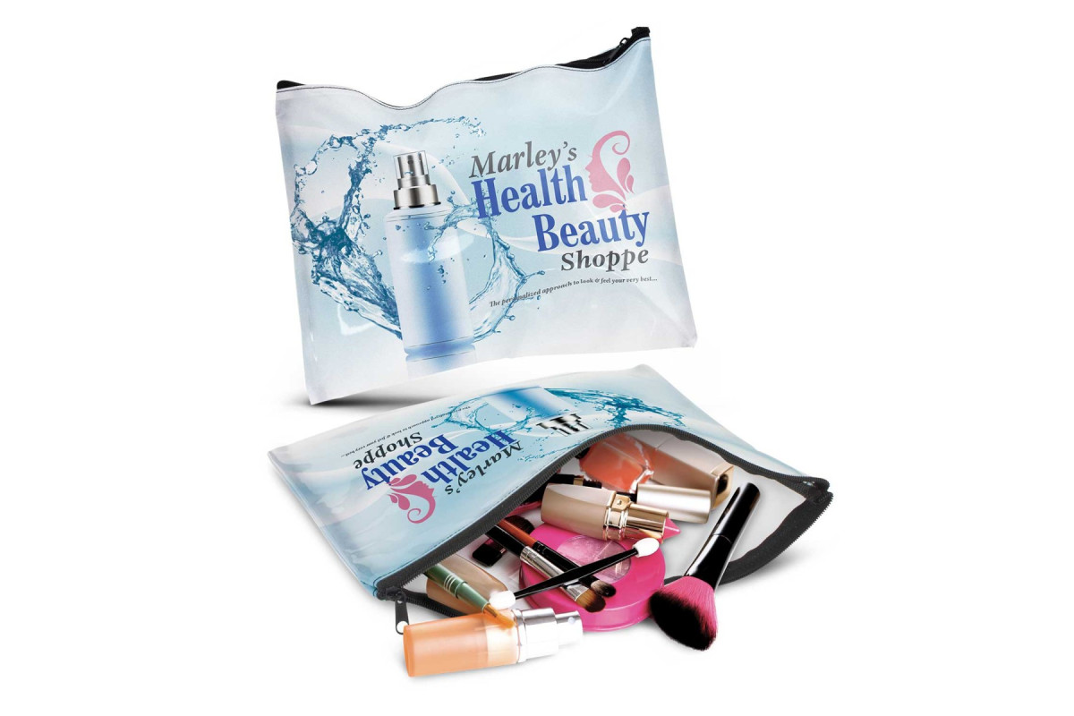 Large cosmetic bag which is manufactured from soft transparent plastic. It has a black zippered closure with black stitching and a polyester lining which can be branded in full colour on both sides at no extra cost. A production lead time of 20 working days applies to this product by air freight and larger orders can be sea freighted on request to reduce the freight cost.