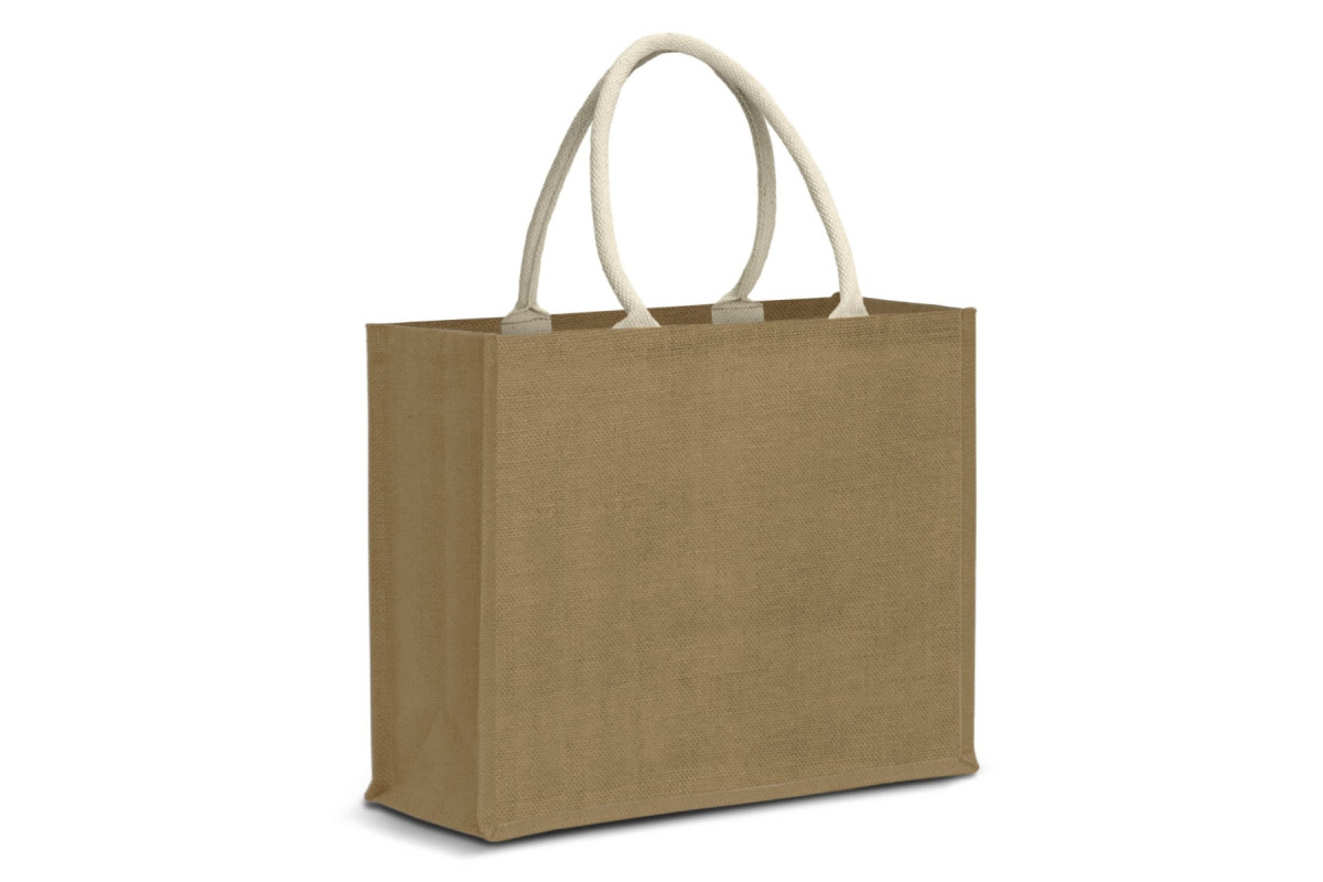 Handy reinforced 27L tote bag. The bag is made with 290gsm corn starch jute with natural cotton handles.