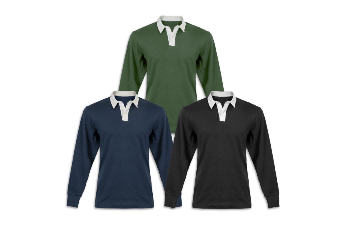 The unisex rugby-inspired jersey is crafted from comfortable 280gsm 100% cotton interlock knit fabric. A sturdy twill collar, colour-matched ribbed cuffs and concealed two-button placket give it a clean, polished look. The fabric is OEKO-TEX Standard 100 certified, having been independently tested for harmful substances and proven safe for skin contact. Available in eight Australasian sizes.