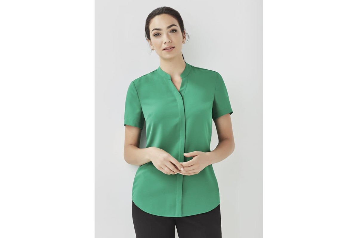 Features: A lightweight fabric with high drape and soft hand feel. Easy care and durable, the Juliette blouse also features inverted back pleat tucks.