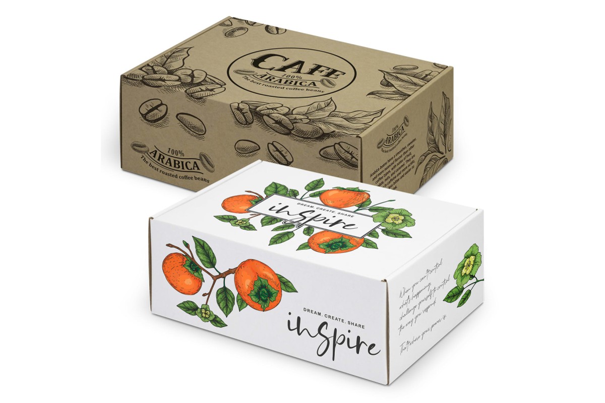 Professional custom gift box made from durable 1.5mm e-flute corrugated cardboard to provide reliable protection during transit. This box is perfect for gifting and building strong brand recognition. Featuring a convenient hinged lid, selected panels of the box can be customised with CMYK digital print. It is supplied flat-packed for easy postage and storage, and its self-locking design ensures hassle-free assembly. The assembled internal dimensions are 300mm x 225mm x 113mm (LxWxH).