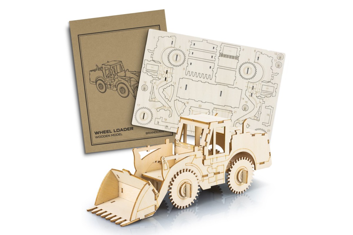 Step into a world of creativity and craftsmanship with BRANDCRAFT's wooden models. Designed to unleash the inner child in any audience, this model wheel loader is expertly laser cut from an A4 sheet of Basswood, a lightweight and strong wood perfectly suited for crafting. The interlocking design means that pieces easily slot together and no tools are needed for assembly. Presented in a brandable cardboard sleeve with assembly instructions, this is an engaging promotional product or gift for adults and children alike. Add your brand to the natural Basswood material or add your brand and colours to the default digital template to bring your brand to life. Features: * Unique craft model wheel loader that presents an innovative branding opportunity * Laser cut from an A4 sheet of Basswood * Plastic-free and made from 100% natural materials * Clever interlocking design means no tools are needed * An interactive and engaging gift for adults and children * Presentation: BRANDCRAFT cardboard sleeve with assembly instructions