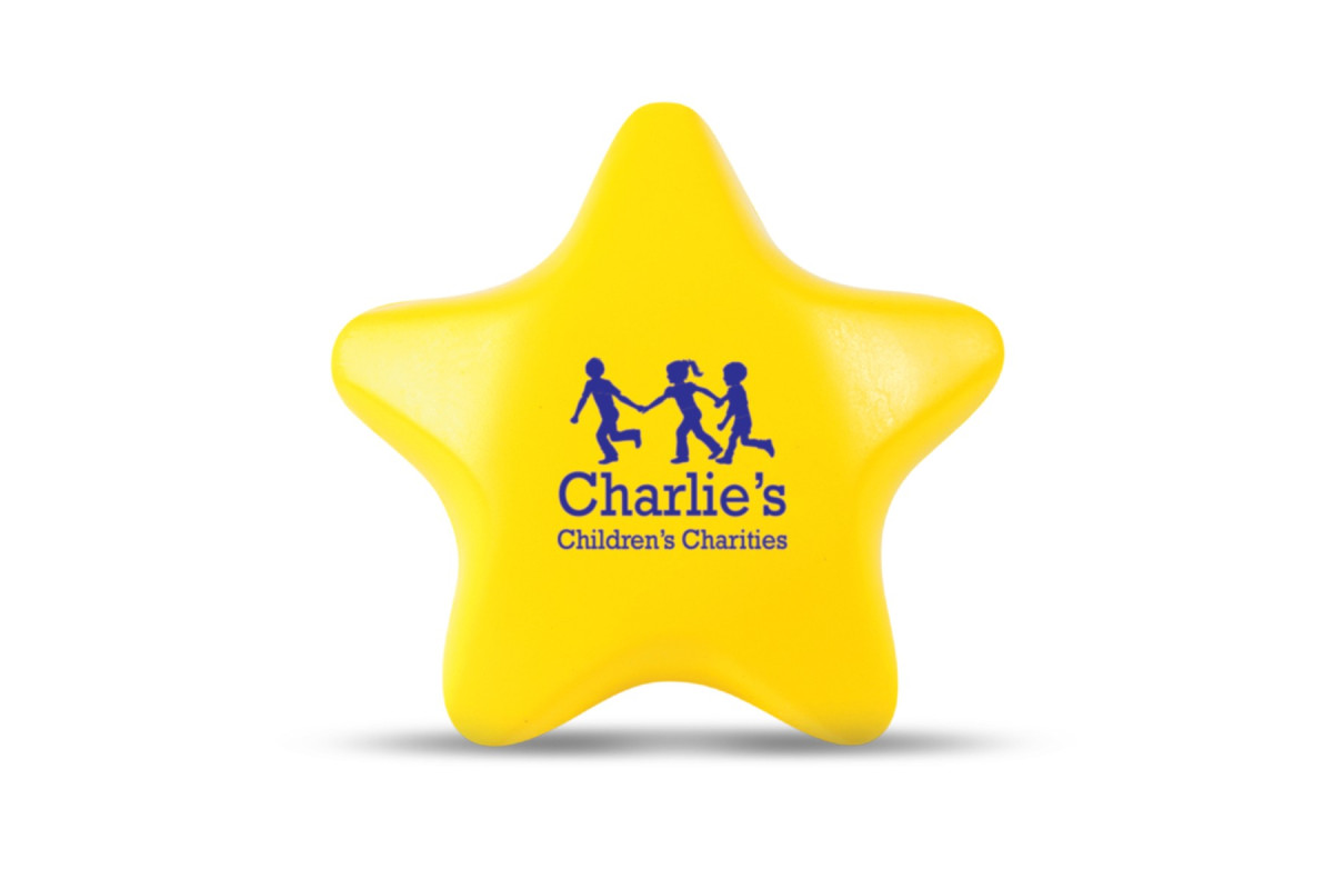 Star shaped squeezable stress reliever made from soft polyurethane.