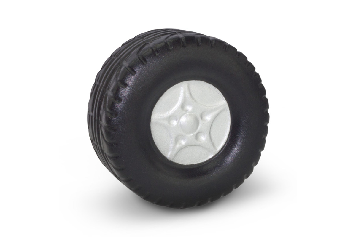 Wheel shaped squeezable stress reliever made from soft polyurethane. Features: * Wheel shaped squeezable stress reliever * Made from soft polyurethane