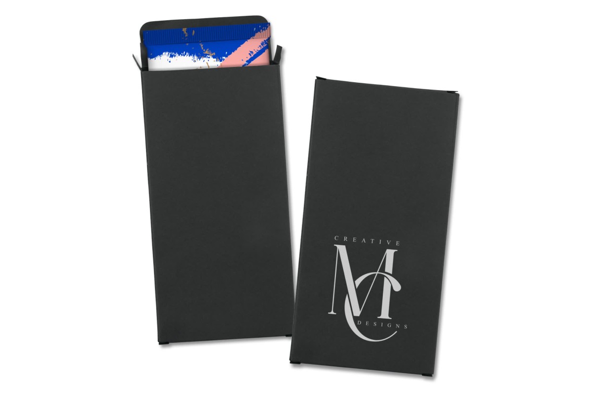 The small Hazel Chocolate Gift Box offers a stylish, simple way to customise chocolate blocks for branded gifts or kitting. Made from durable 300gsm black kraft card, it can be branded with your logo or message using a one-colour screen print. Perfect for enhancing any chocolate gift experience, this box leaves a lasting impression.