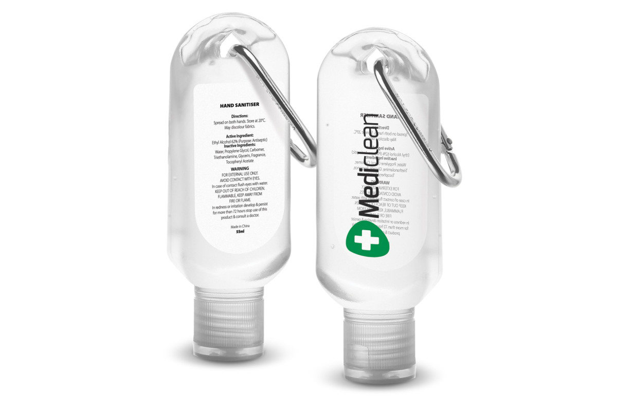 Gel hand sanitiser in a convenient tube with a no-mess flip cap and a carabiner clip. It has full ingredient information on the back of the tube. Features: * 55ml hand sanitiser in a convenient tube * No-mess flip cap and a carabiner clip * Ingredient information on back of tube