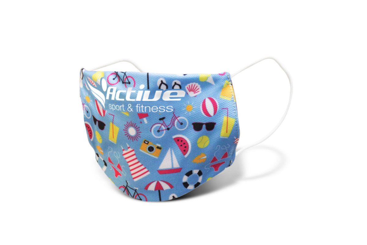 Small reusable face mask which provides protection with two layers of 140gsm polyester. The mask is easily reused by hand washing it in warm water. Comfortable elastic ear loops hold the mask securely in place and can be black or white. The front panel can be branded with stunning edge-to-edge full colour print and the inside layer of the mask will match the outer print. This face mask is manufactured for use in the home or for recreational or occupational use and it is supplied in an individual polybag which is labelled with care instructions. A production lead time of 20 working days applies to this product by air freight and larger orders can be sea freighted on request to reduce the freight cost.