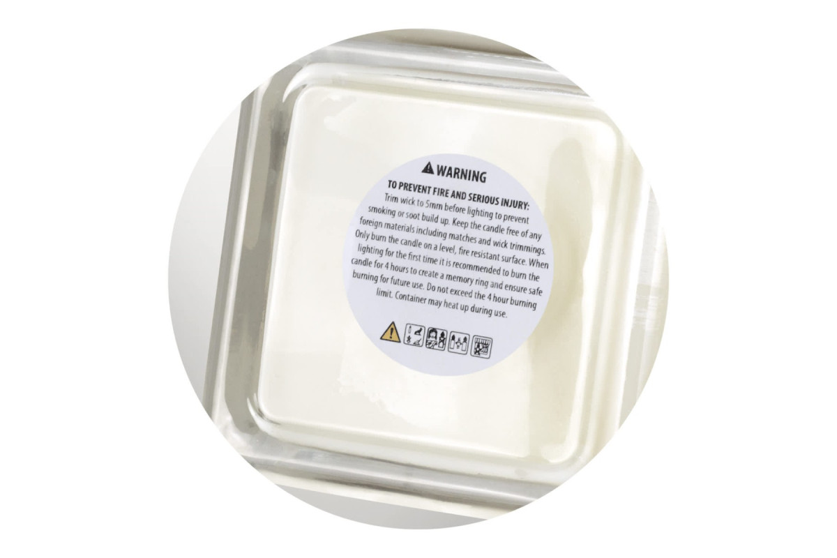 High-quality 215g aromatherapy vanilla-scented candle in a glass vessel. An ingredients label is on the product's base. Features: * Quality 215g vanilla-scented aromatherapy candle * Glass vessel with ingredients label on base