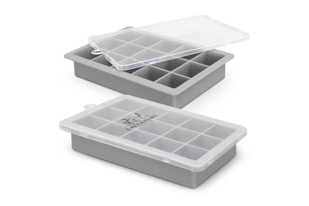The Blizzard Ice Tray is made from flexible silicone for easy ice cube release with just a twist. It has 15 compartments and comes with a lid to not only prevent spills but also making it stackable for efficient storage. Made from BPA-free materials, this tray offers a practical and safe way to make and store ice.