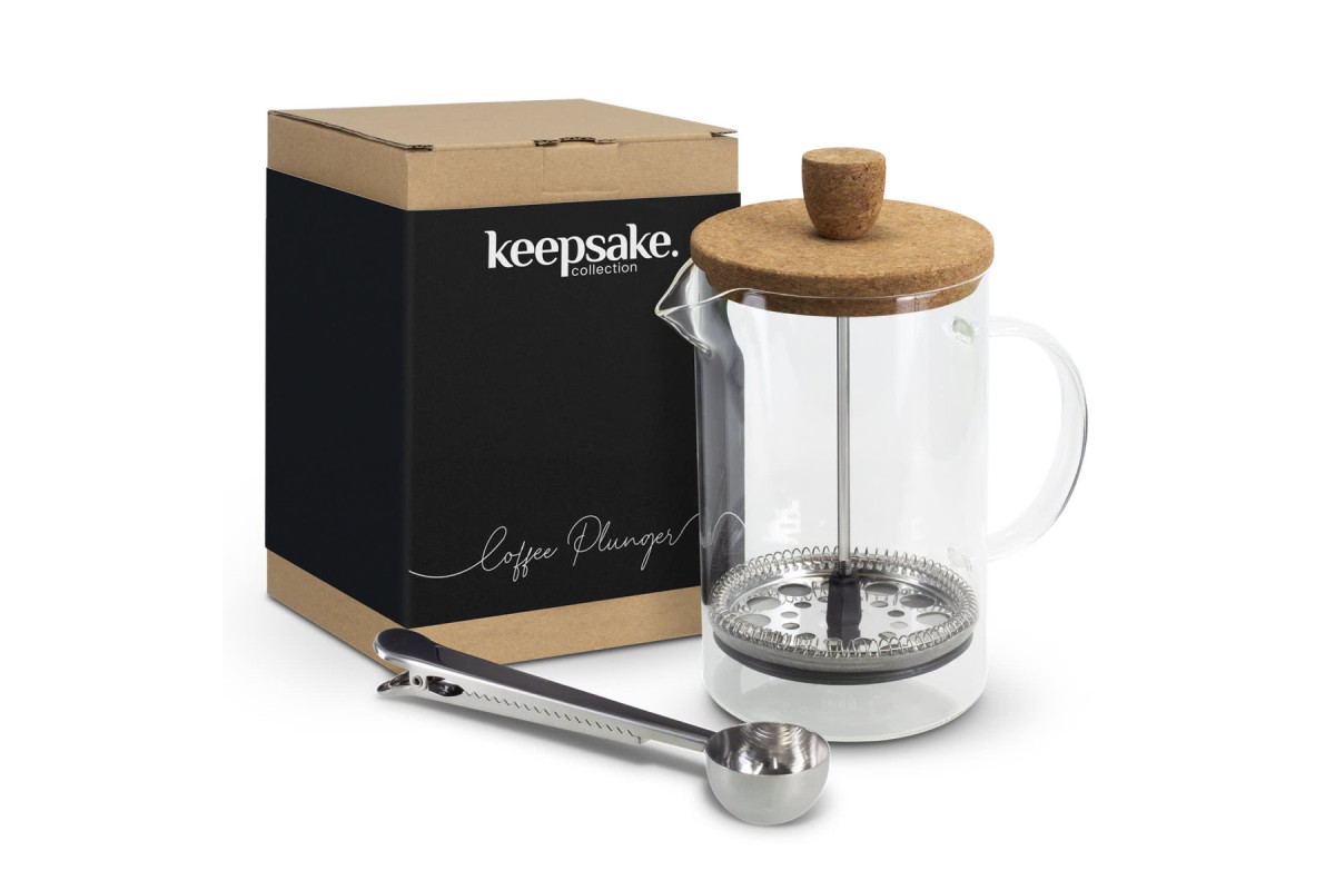 Brew the perfect coffee with the elegant 800ml Onsen Coffee Plunger. Made from premium borosilicate glass with a natural cork lid and a stainless steel spoon that doubles as a bag clip for coffee grinds, Onsen is a perfect gift for coffee lovers. Onsen is presented in a natural gift box with a Keepsake branded sleeve.