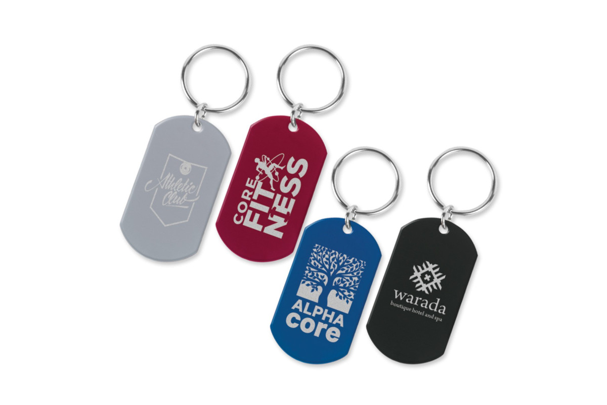 Lightweight metal key ring which laser engraves to an oxidised white colour.