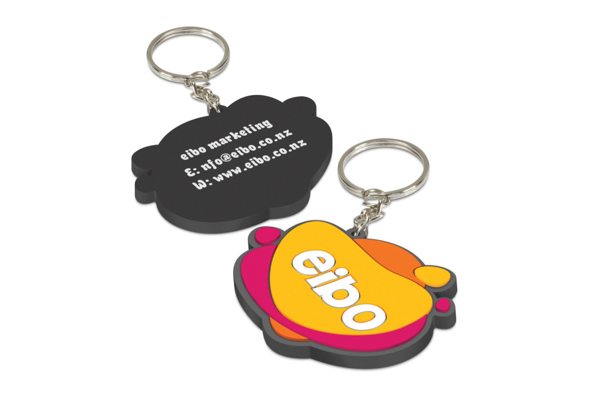 Flexible PVC rubber ring which is manufactured in custom shapes with the option of a 2D or 3D image on one side. The price includes up to four PVC colours and more colours are available for an additional charge. The reverse side can be screen printed in one colour if required. A production lead time of 35 working days applies to this product by air freight and larger orders can be sea freighted on request to reduce the freight cost.