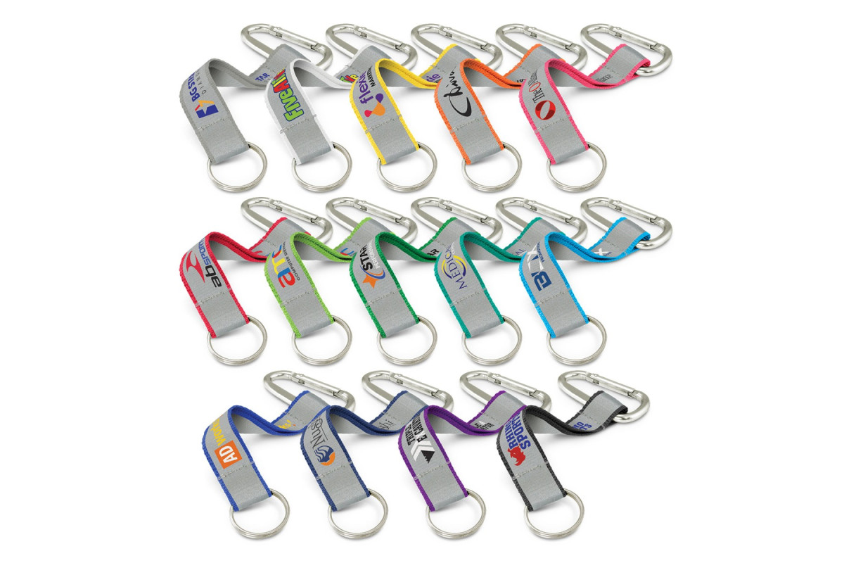 20mm wide polyester key ring with a reflective strip for added visibility and a secure carabiner clip. It is ideal for people working at night or in poor light. A production lead time of 25 working days applies to this product by air freight and larger orders can be sea freighted on request to reduce the freight cost. Features: * 20mm wide polyester key ring * Reflective strip for added visibility and a secure carabiner clip * Ideal for people working at night or in poor light * Production lead time of 25 working days by air freight