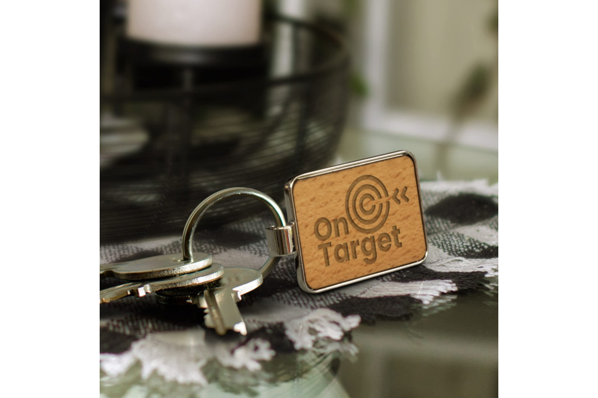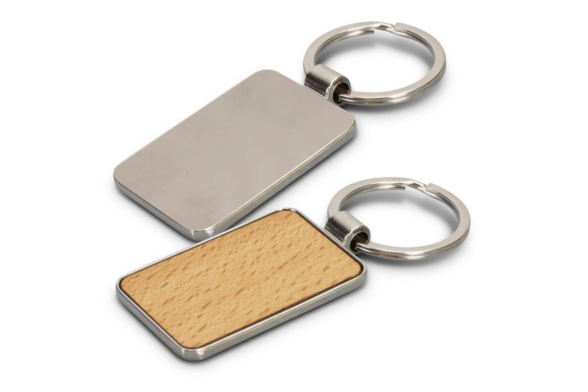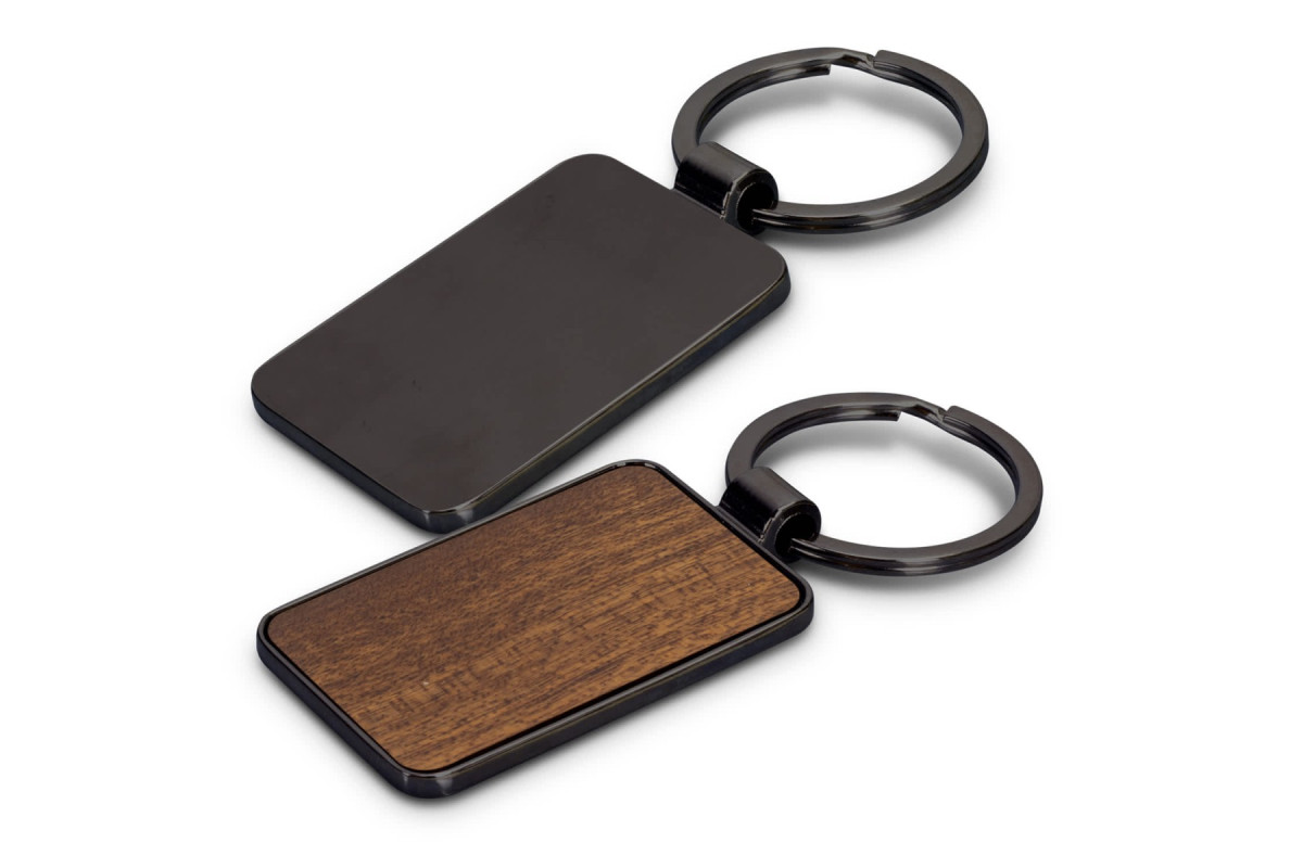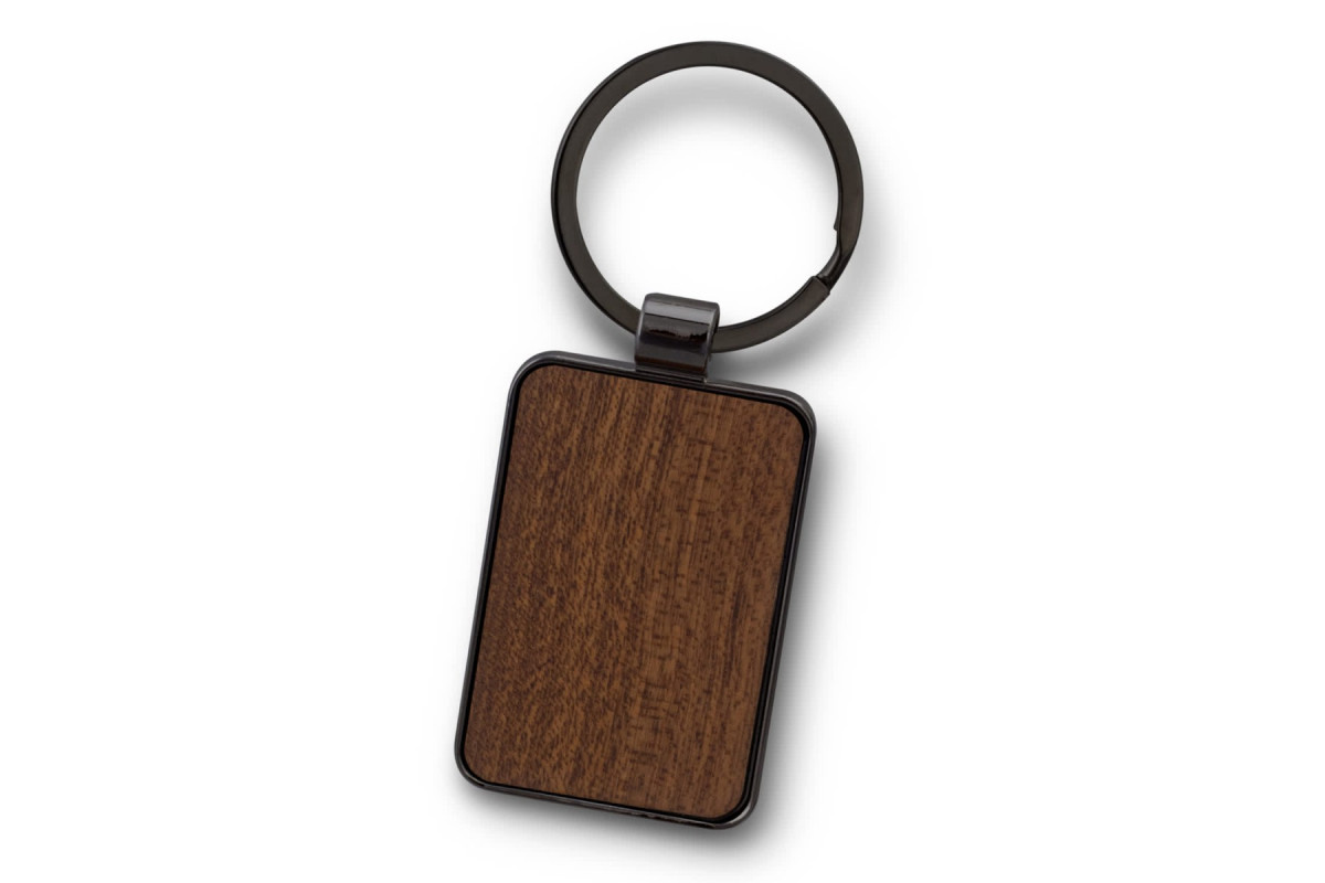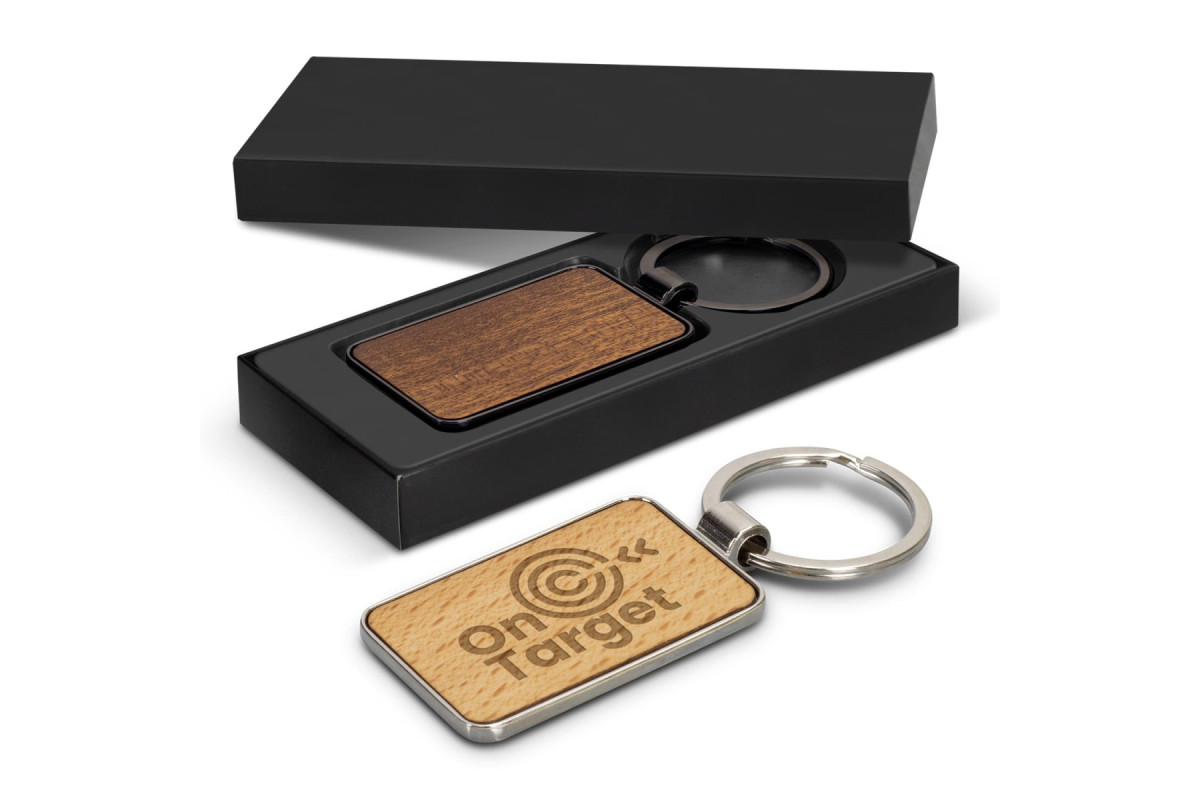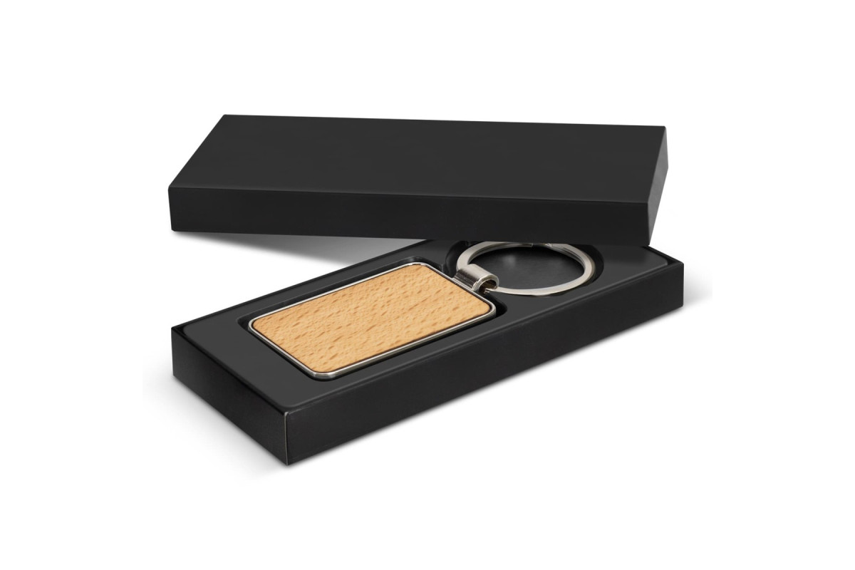 Unique keychain that features a square shiny nickel or gunmetal key ring with a beech wood or sapele wood branding area. It's presented in an individual black box. Features: * Rectangle shiny nickel or gunmetal key ring * Beech wood or sapele wood branding area * Supplied in individual black box
