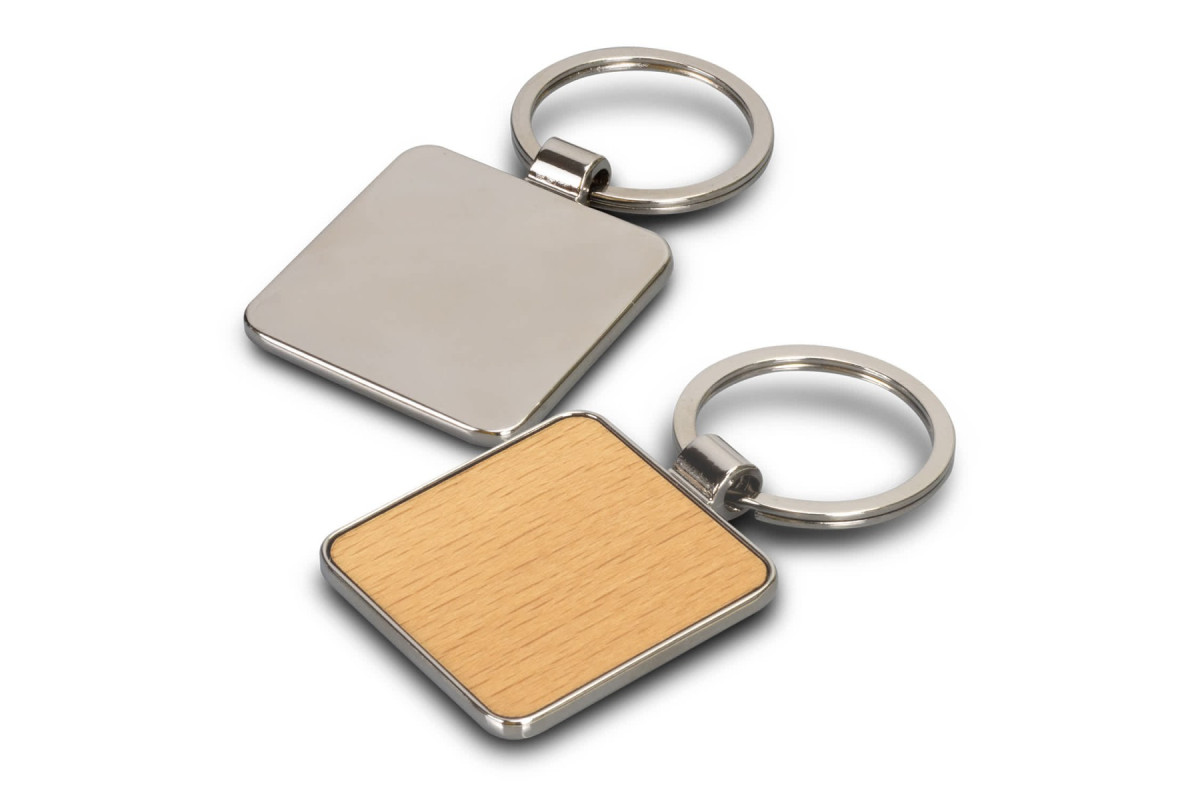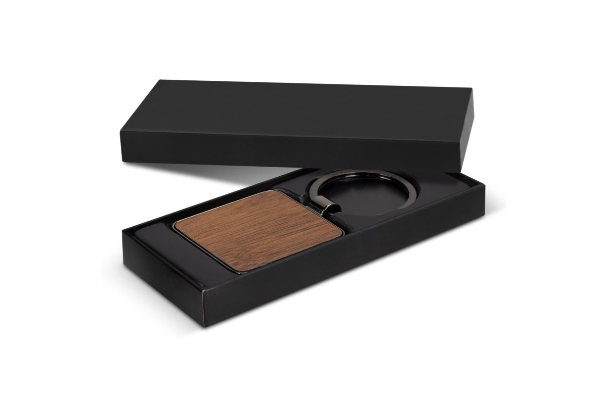 Durable keychain that features a square shiny nickel or gunmetal key ring with a beech wood or sapele wood branding area. It's presented in an individual black box. Features: * Square shiny nickel or gunmetal key ring * Beech wood or sapele wood branding area * Supplied in individual black box