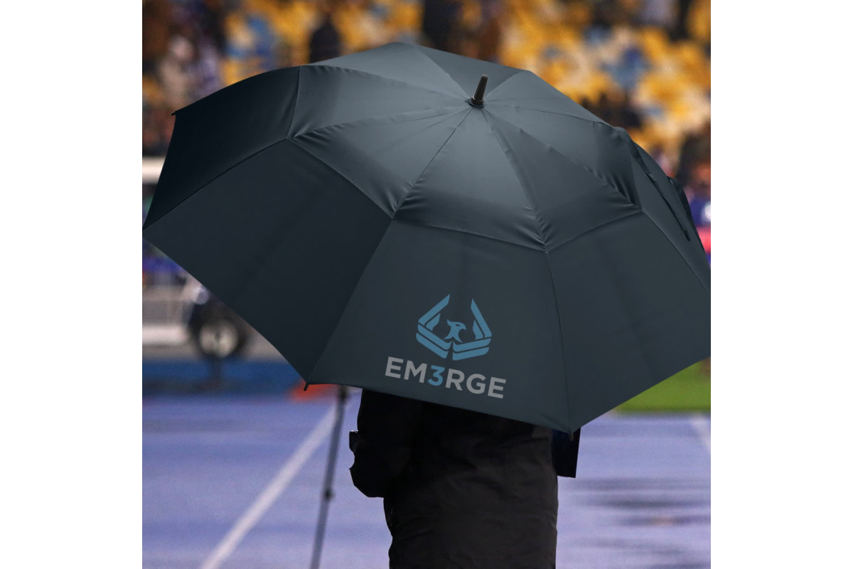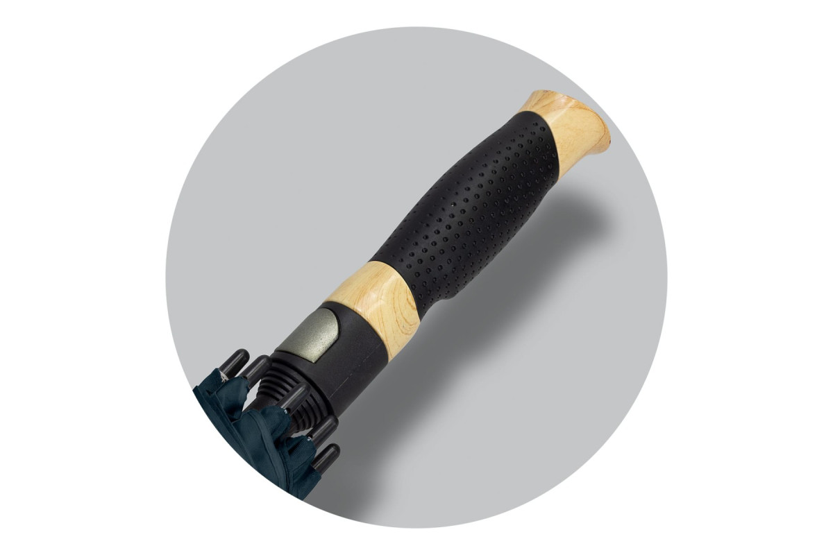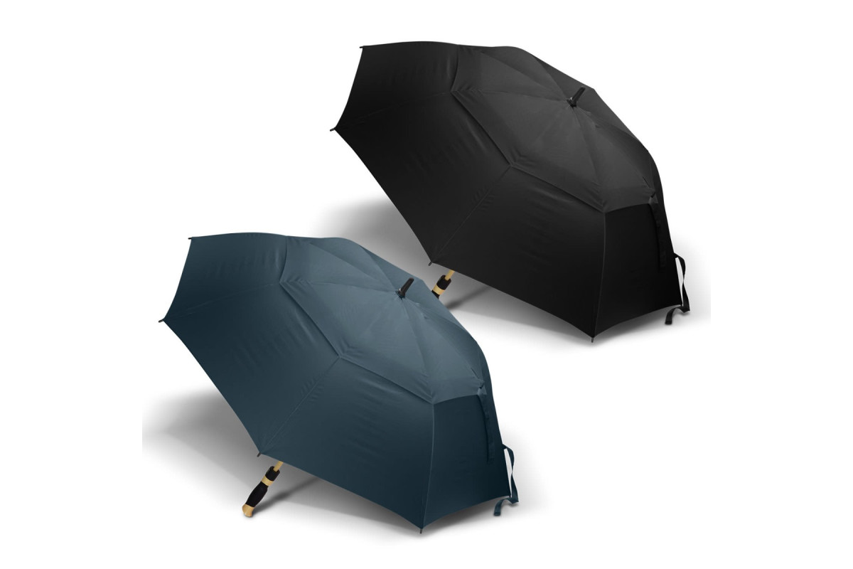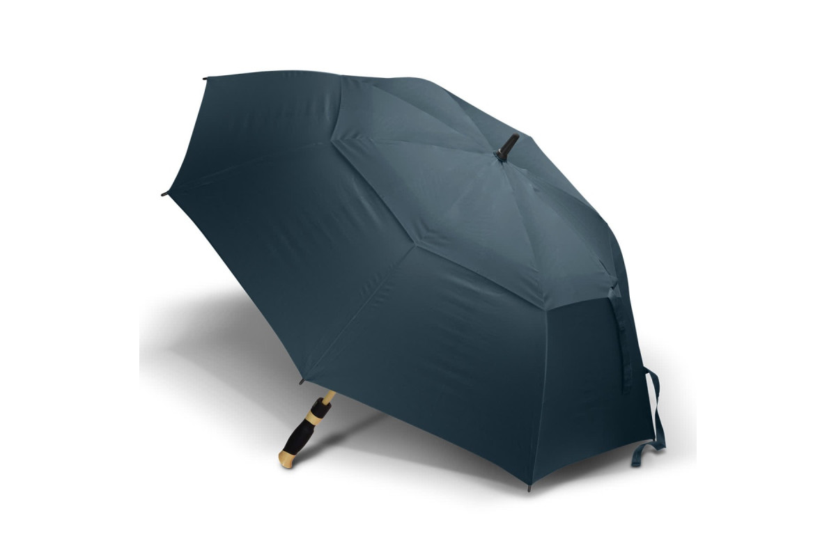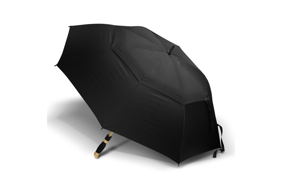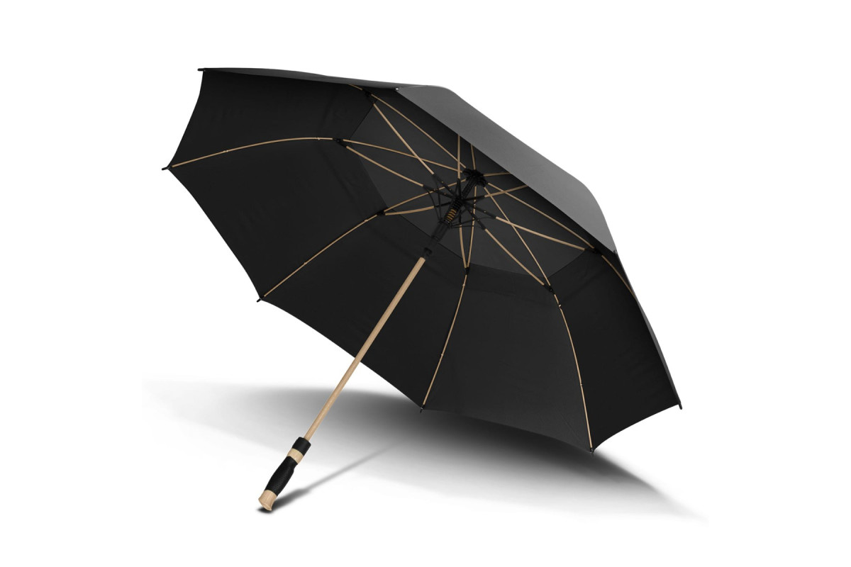Premium eight-panel sports umbrella with automatic opening. The extra-large vented canopy is made from strong 190T pongee and has 76cm ribs. It has a windproof, wooden-look fibreglass frame and shaft with a wooden-look handle that has a plastic grip. Features: * Premium sports umbrella with automatic opening * 190T pongee vented canopy * Wooden-look fibreglass frame and shaft * Wooden-look handle with plastic grip