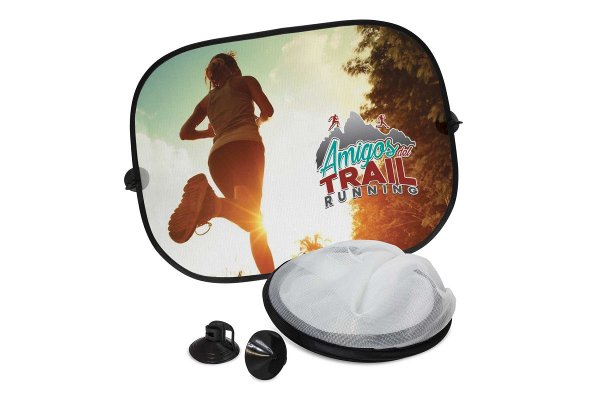 Set of two car sunshades for rear car door windows which can be branded in spot colour or full colour. They are held in place with suction cups which are included. A production lead time of 20 working days applies to this product by air freight and larger orders can be sea freighted on request to reduce the freight cost.