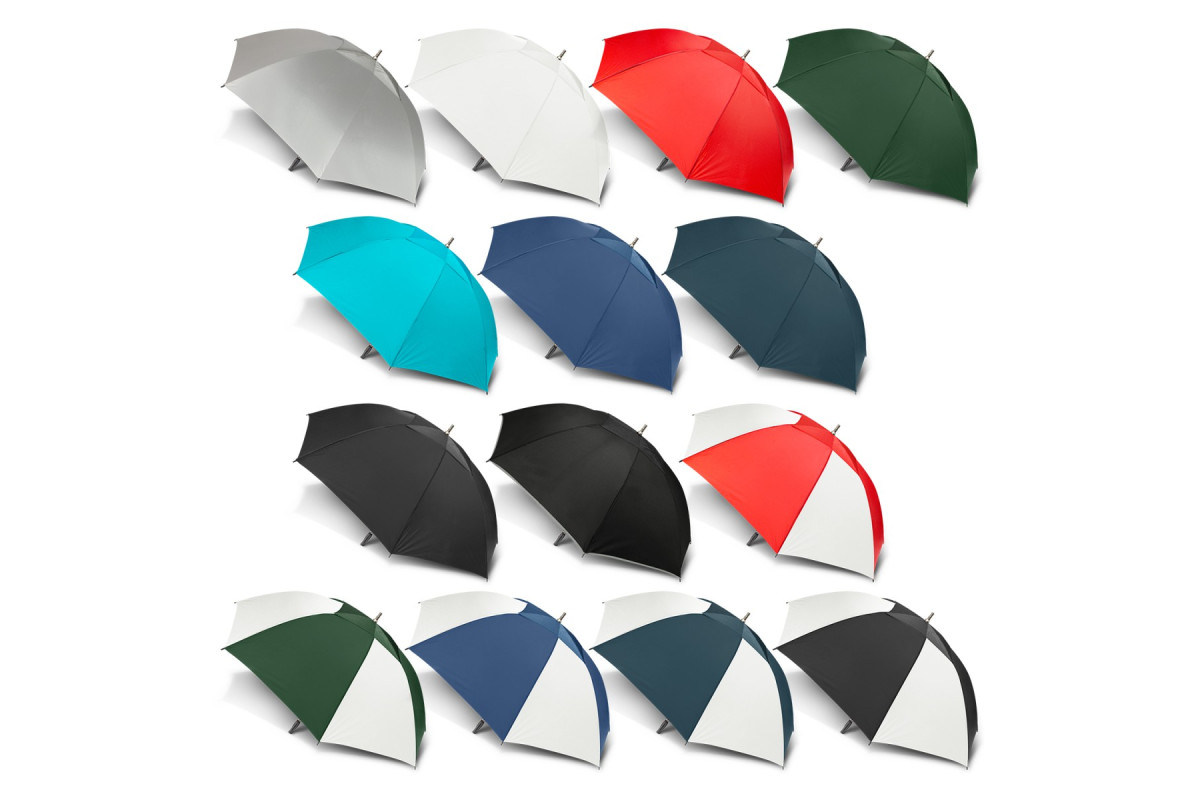 The Sport Umbrella is part of the premium Hurricane range and is built to last in all conditions. The eight-panel pongee canopy is vented and is supported by a fibreglass shaft and 78cm fibreglass ribs with built-in guide ropes for added reinforcement. It has a matching pongee carry sleeve with mesh detailing and a moulded rubber handle.