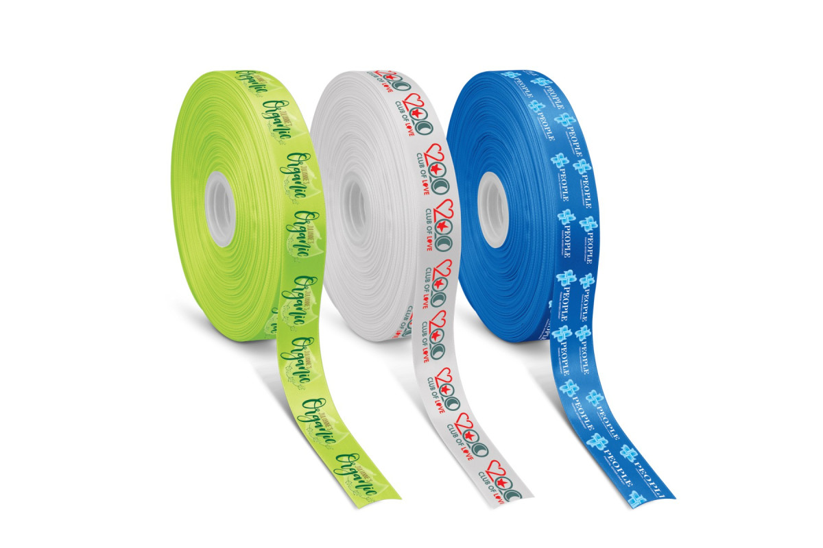 50mm wide polyester ribbon with full colour branding on one side. It is supplied in convenient rolls and the price is quoted per metre. A production lead time of 20 working days applies to this product by air freight. Must be ordered in quoted quantities per roll.