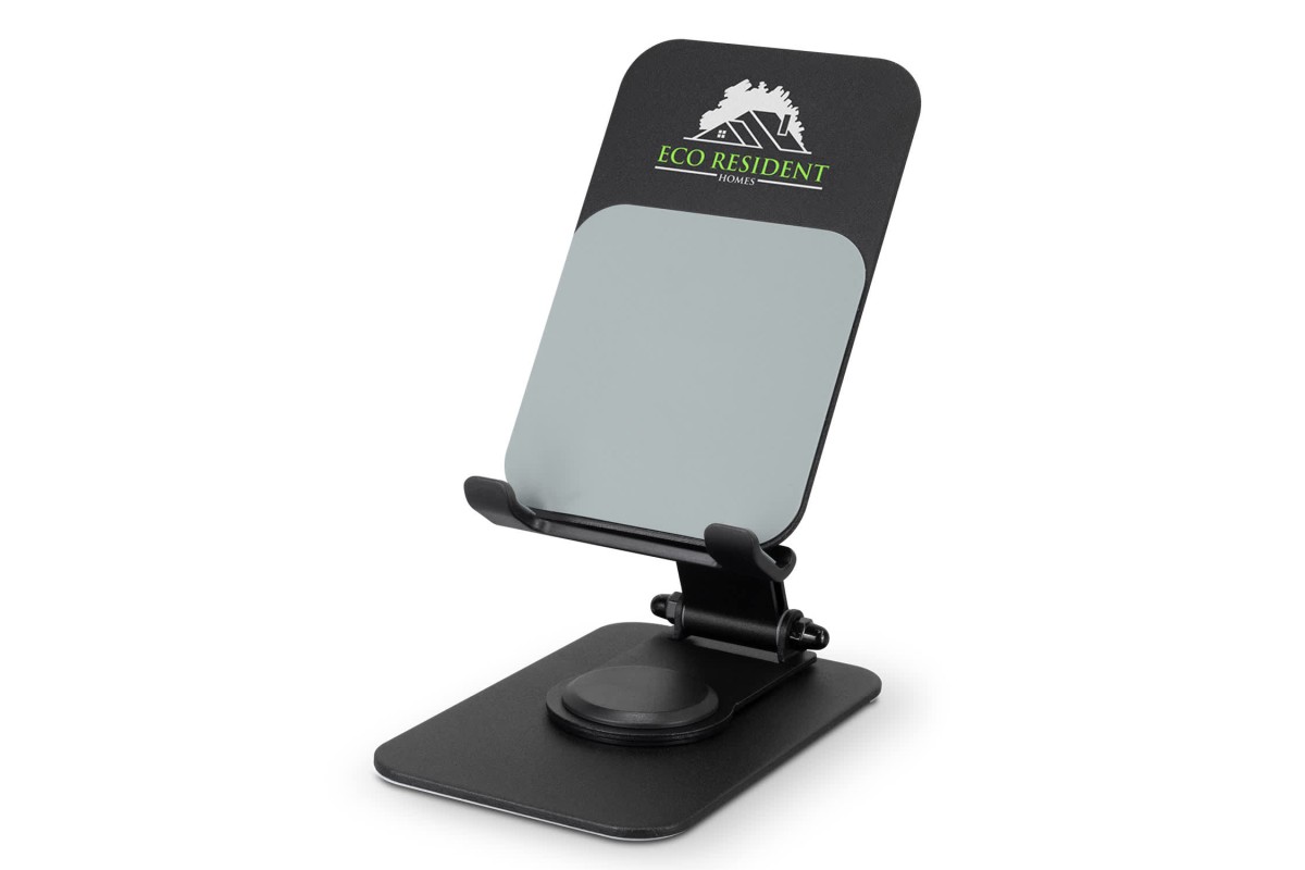 This stylish and functional phone stand will improve any hands-free phone and tablet experience. Made from robust aluminium alloy and steel with a tough powder coated finish, this phone and tablet stand's thin, compact design means it folds smoothly down for easy transportation, perfect for work, entertainment or travel. The 360-degree rotating base swivel and 120-degree viewing angle adjustment allow you to find the perfect angle, and non-slip silicone pads on the cradle and base ensure a secure grip, keeping your device in place.