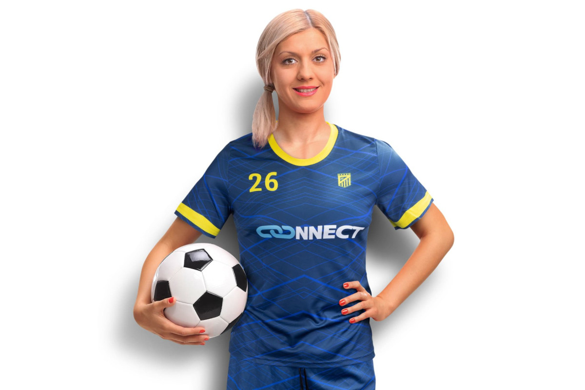 Functional womens soccer top manufactured from 150gsm 100% ultra-mesh polyester material which is breathable and soft to touch. The custom artwork is PMS matched with personalisation free of charge. A production lead time of 35 working days applies to this product.