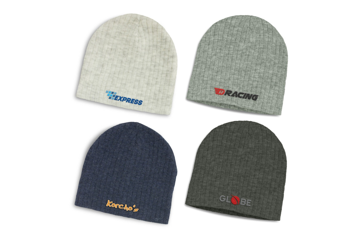 Stylish cable knit beanie made with two-tone acrylic yarn which creates a heathered finish. It is available in one size which will fit most people.