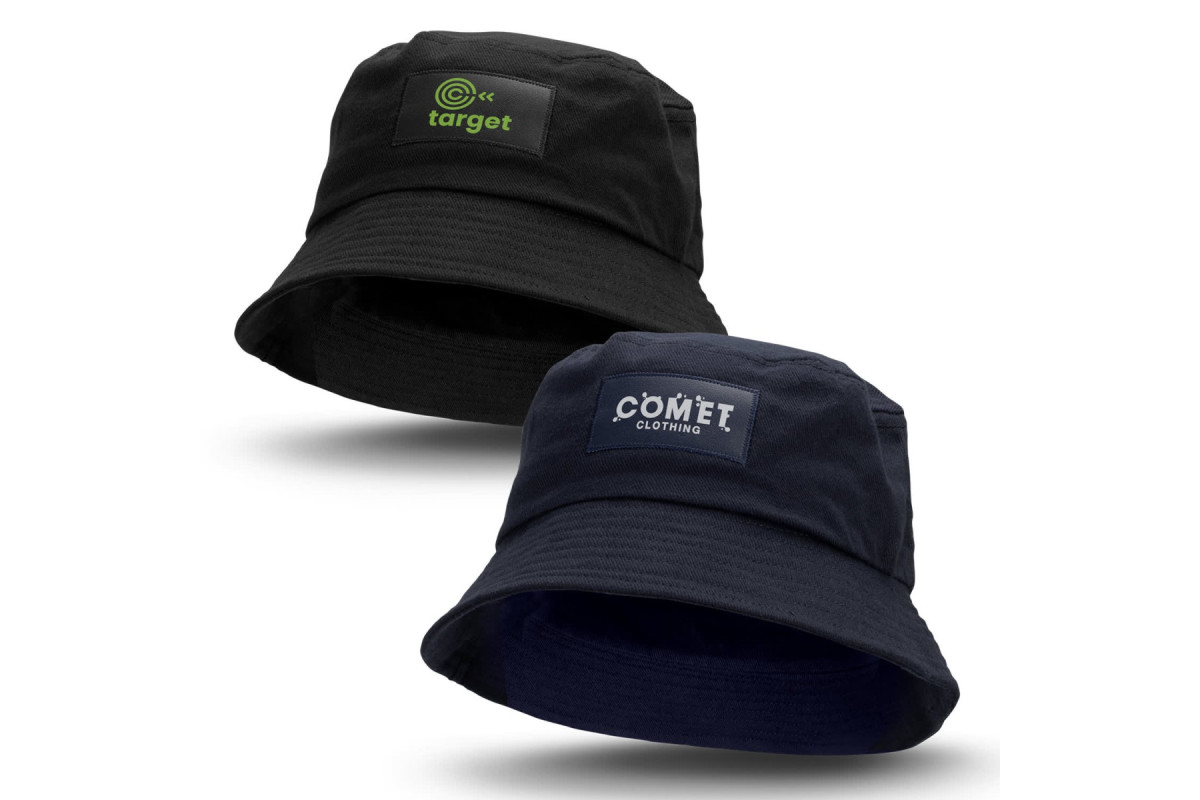 Premium cotton bucket hat with a sweatband. It has a matching leather-look rectangular patch that provides a very affordable branding option. The hat complies with AS/NZS standards for sun protection. It is available in the choice of two sizes which will fit most people.