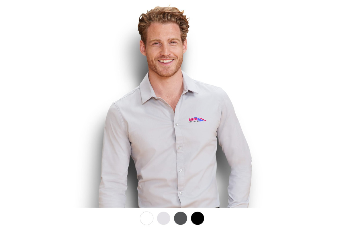 Smart and fashion-forward, the Blake men's Shirt is manufactured from a blend of 120gsm cotton and elastane, making this shirt well-suited for retail and hospitality workplaces. This shirt features long sleeves with rounded two-button cuffs, an eight-button placket, a classic collar and darts on the back of the shirt for a stylish fit. This shirt is a European fit and is available in seven sizes. Washing it with similar colours before first use is recommended.