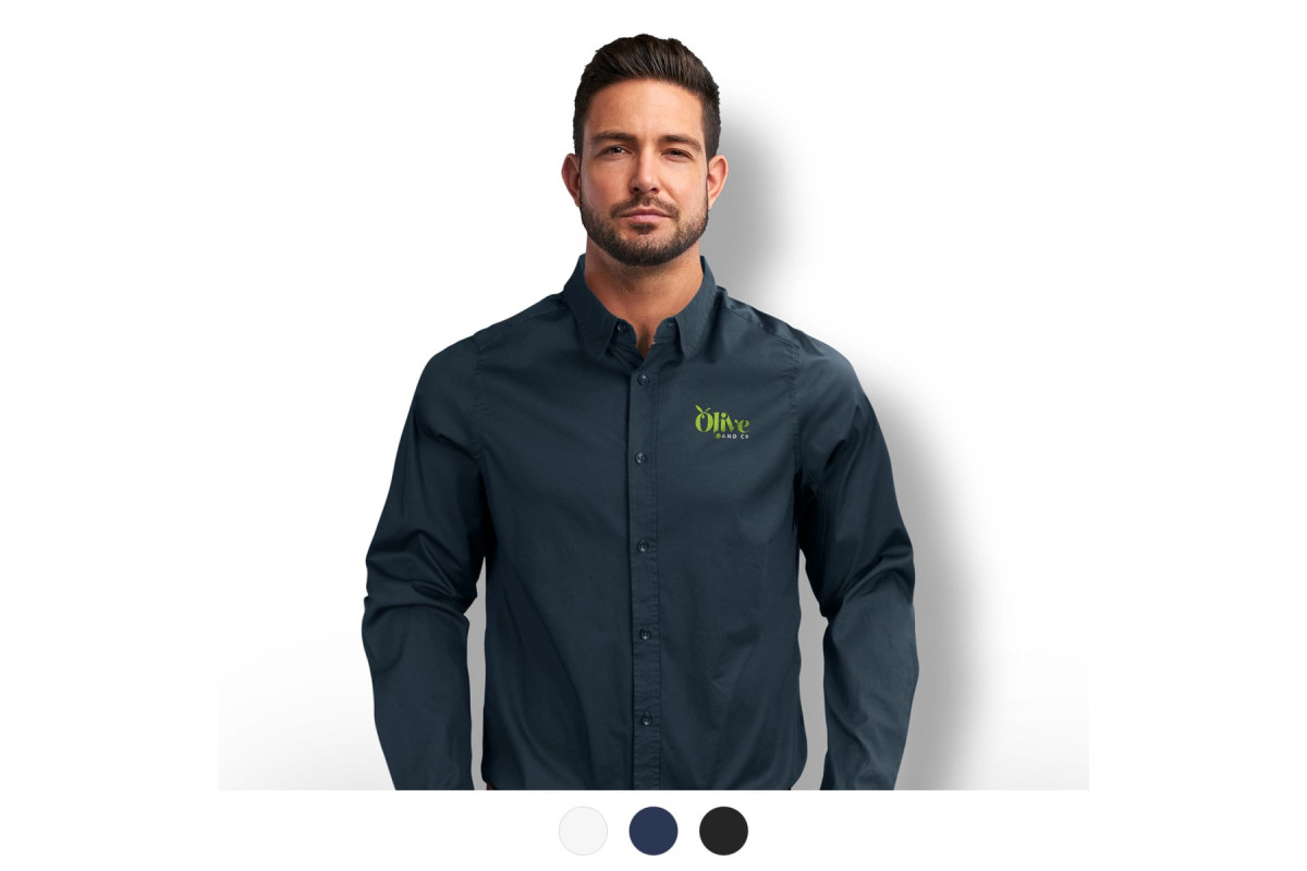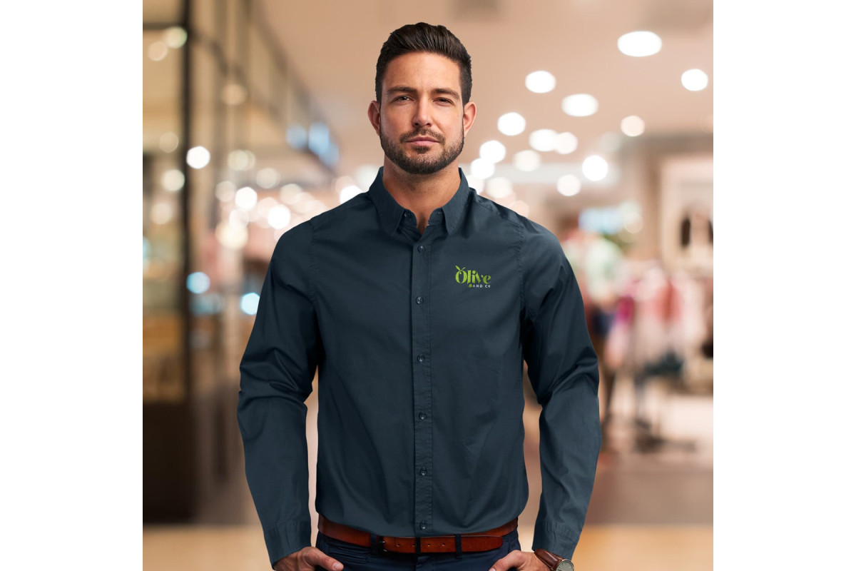 The TRENDSWEAR Parker Men's Poplin Shirt is made from a cotton and elastane blend, with the lightweight 120 gsm poplin fabric offering everyday comfort. Thoughtfully detailed with a seven-button placket and single-button cuffs, it's a smart choice for any occasion. A back yoke with a boxed pleat allows for a natural range of movement without compromising on structure. The fabric is OEKO-TEX Standard 100 certified, having been independently tested for harmful substances and proven safe for skin contact. Available in eight Australasian sizes.