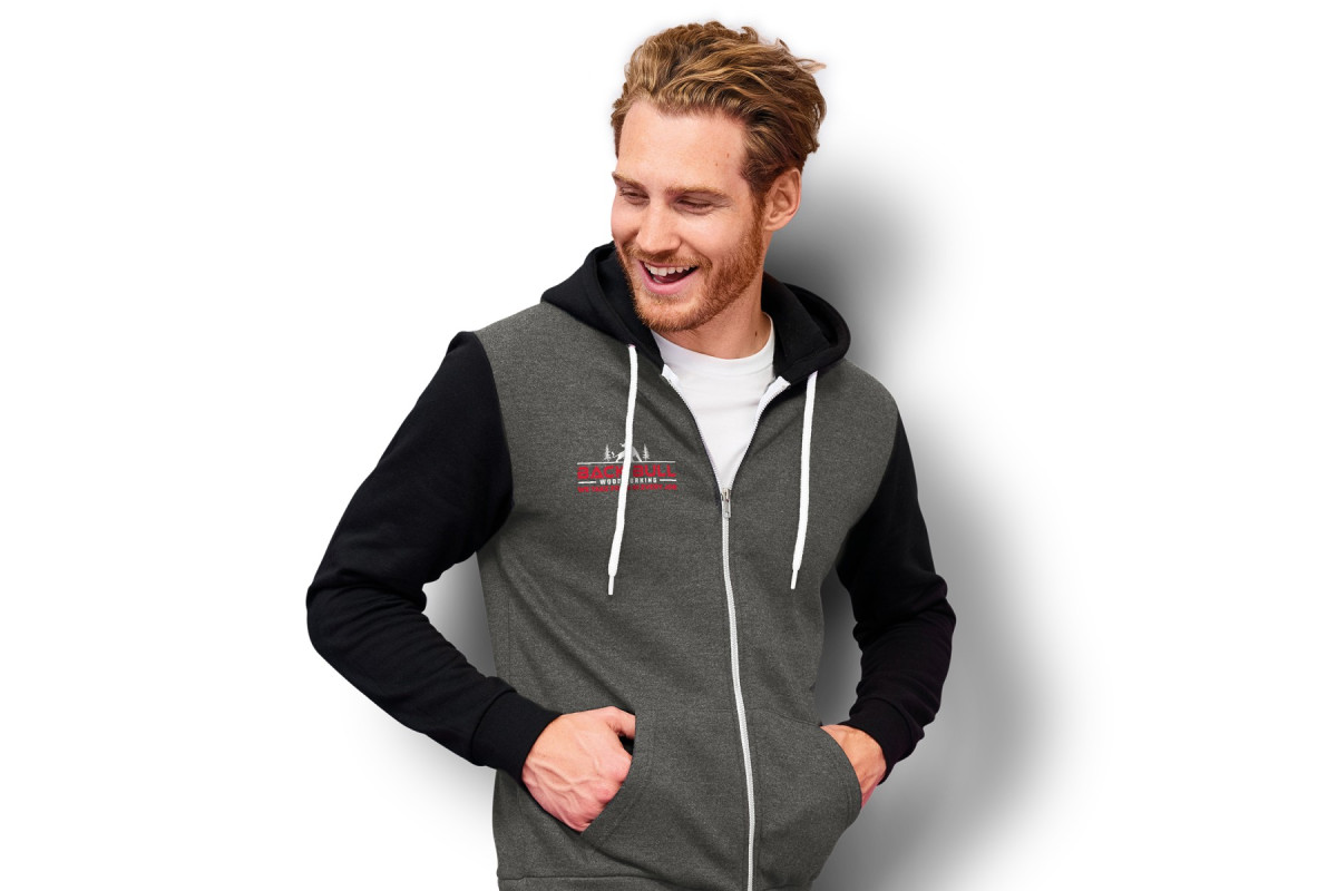 Contrasting 280gsm, unisex adult sweatshirt with a full zippered front and a brushed fleece lining for added comfort and warmth. It is manufactured from an 50/50 blend of ring-spun cotton and polyester with ribbed elastane on the hem and cuffs. Other features include set in sleeves, two kangaroo pockets on the front and a hood with a contrasting white drawstring. The Silver sweatshirt is cut and sewn with a fitted design. It is available in six sizes and provides an excellent branding opportunity that will appeal to a broad market. Features: * Contrast sleeve unisex adult sweatshirt * Manufactured from a 50/50 blend of ring-spun cotton and polyester brushed fleece * Full zippered front, knitted cuffs and hem * Available in six European sizes