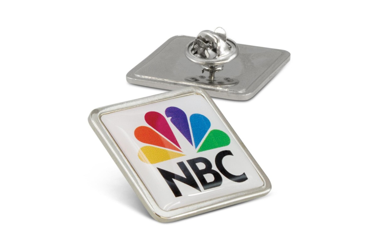 Metal lapel pins which are available in six standard sizes and shapes. They can be branded in spot colours or full colour with a luxury resin coated finish.