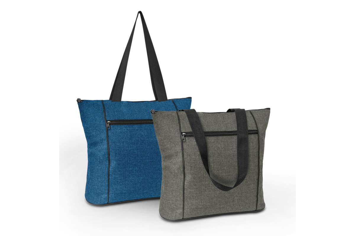 Premium tote bag with a rounded gusset and a sewn in base for added capacity. It is manufactured from poly-canvas with an on-trend heather style finish. Other features include a zippered front pocket, a secure zippered top closure and long woven carry handles so it can be comfortably carried on a shoulder.
