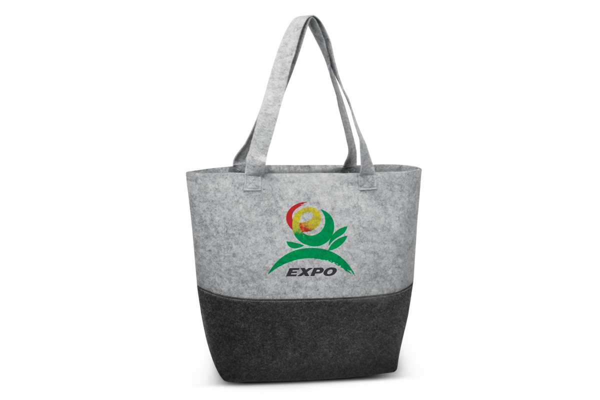 Fashion inspired large tote bag with a two-tone finish and long handles. It has a base gusset for added capacity and is manufactured from trendy poly-felt.