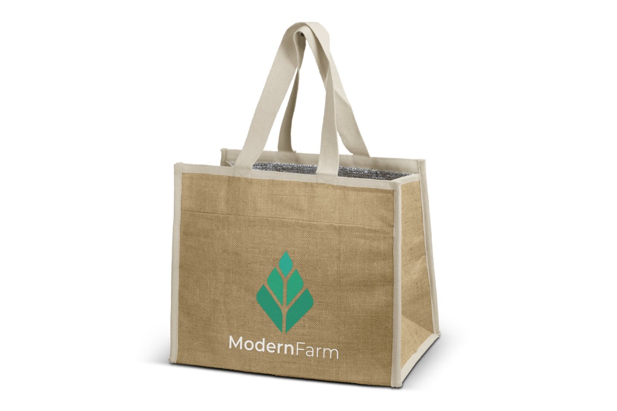 Large 13L cooler tote bag with cotton accents. Made from natural jute and has a large gusset. Lumi has a Metpet insulation with aluminium foil lining. The tote bag folds flat for ease of storage and transportation.