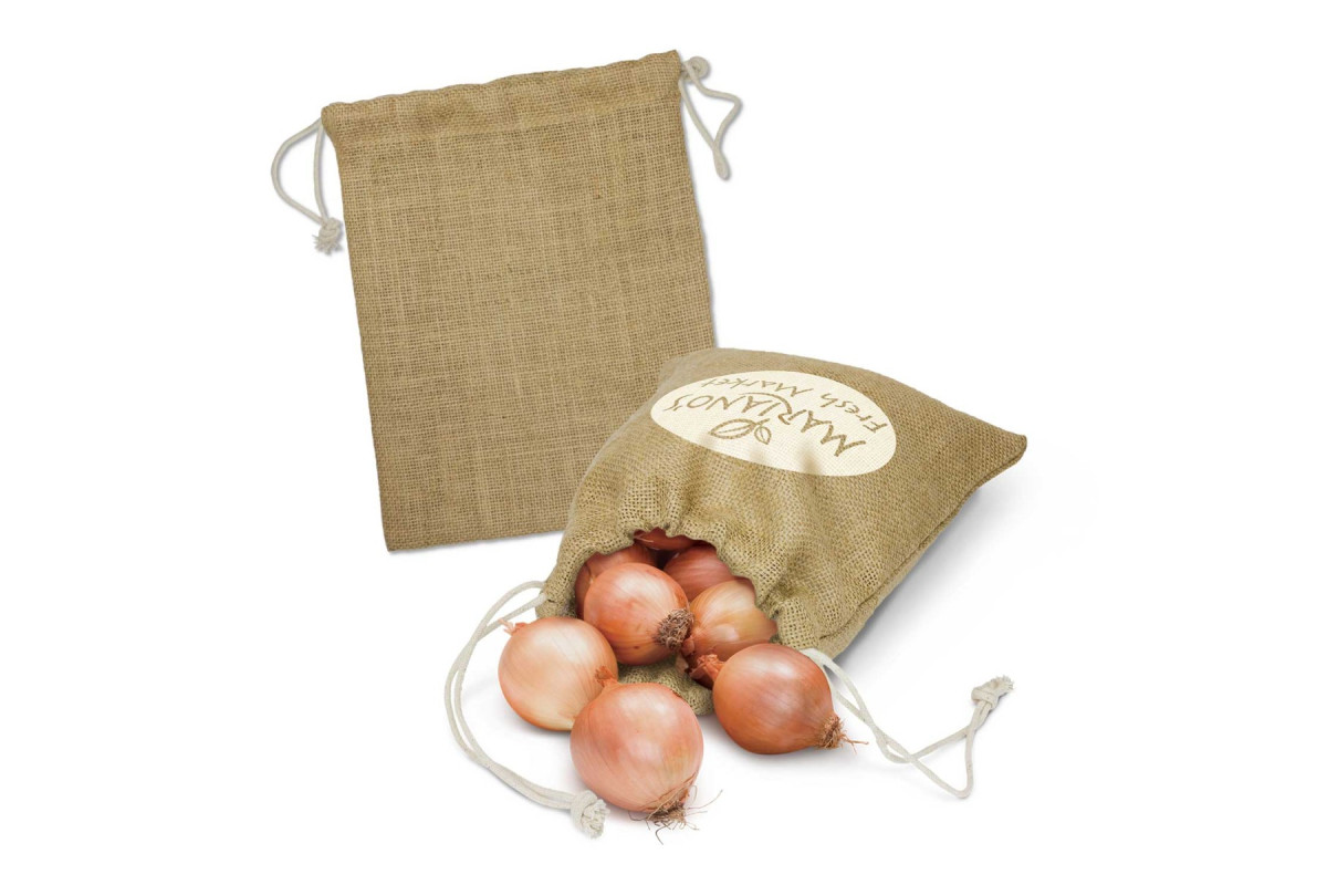 Reusable jute bag with a drawstring closure which is ideal for transporting and storing heavier produce from farmers markets and supermarkets. Jute is a strong, natural fibre which allows produce to breathe so it is always in the best possible condition and can be reused many times, replacing the need for single-use plastic bags.