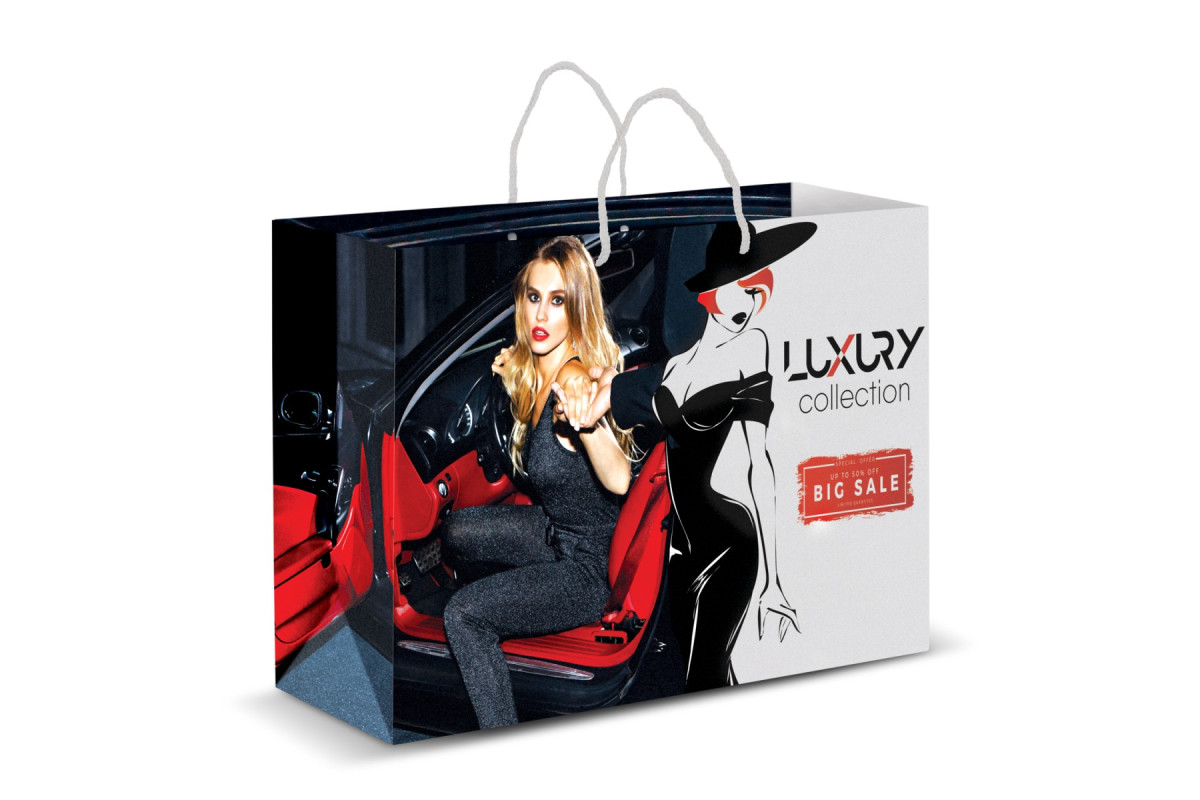 Extra-large paper carry bag with strong woven polypropylene rope handles. It is manufactured from gloss laminated 157gsm art paper and can be branded with stunning edge-to-edge spot colour or full colour printing on all sides including the base. A production lead time of 35 working days applies to this product by air freight and larger orders can be sea freighted on request to reduce the freight cost. Features: * Extra-large paper carry bag with strong woven polypropylene rope handles * Manufactured from gloss laminated 157gsm art paper * Edge-to-edge spot colour or full colour printing on all sides including the base * Production lead time of 35 working days by air freight