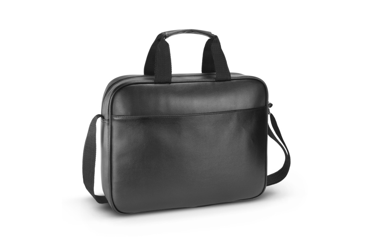 Sturdy laptop bag with padded compartments for both a laptop and a tablet which is manufactured from highly durable poly-leather. It has a large zippered pocket on the front, woven carry handles with a Velcro cuff and an adjustable woven shoulder strap.
