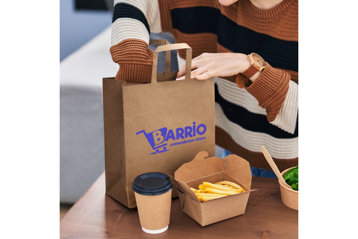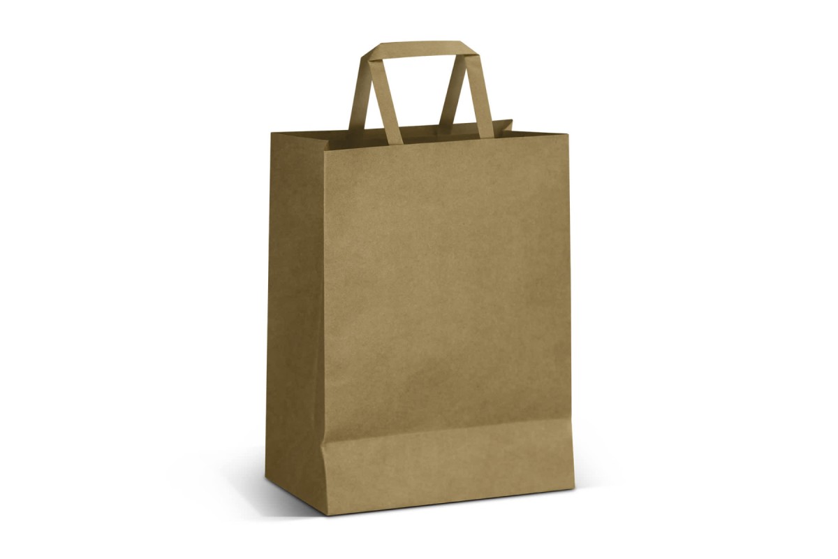 Large carry bag made from 180gsm paper with a reinforced base and square-folded 100gsm paper handles. This bag is portrait orientated with handles and gusset along the shorter edges.
