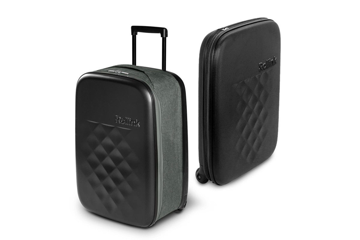 Rollink's Flex Earth Suitcase is the world's slimmest suitcase - this generous 60L case is perfect fortravel and folds down to an incredibly compact 8cm (11cm including wheels) when not in use. Belongings are protected via the lightweight yet durable polypropylene hard outer shell, which is scratch-resistant and water-resistant. The interior is tastefully lined with the Rollink logo and features foldaway structural panels for additional support. A telescopic handle and sturdy wheels make this suitcase perfect for regular travellers. Features: * Generous 60L suitcase that folds to a compact 8cm * Robust, scratch-resistant hard shell to protect belongings * Lined interior with structural panels for additional support * Two wheels and a telescopic handle for easy transport * Quick access side slip pocket * Three-year Rollink manufacturer's warranty