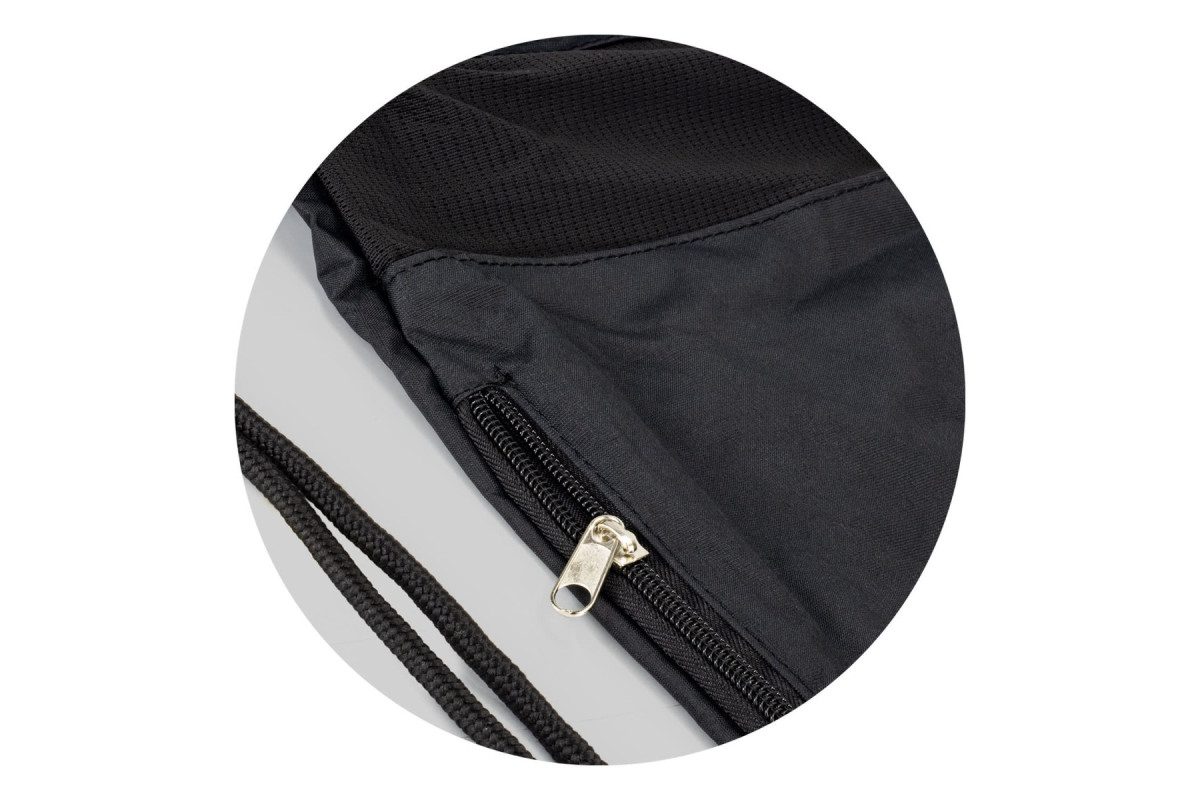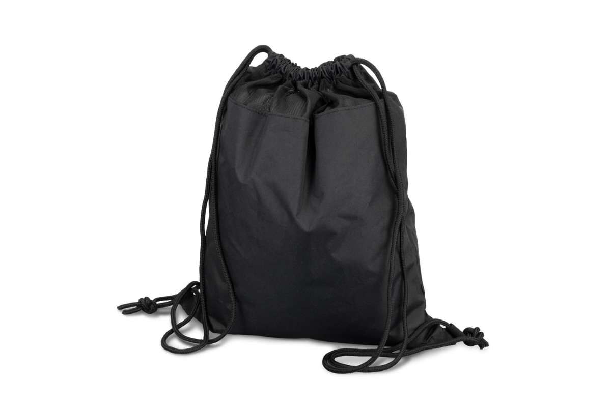 Lightweight and durable drawstring backpack made of high-density 1680D pongee ripstop, which is water-resistant, making it suitable for different activities. The backpack features a polyester mesh top insert and polyester strings that act as drawstrings for the main compartment.