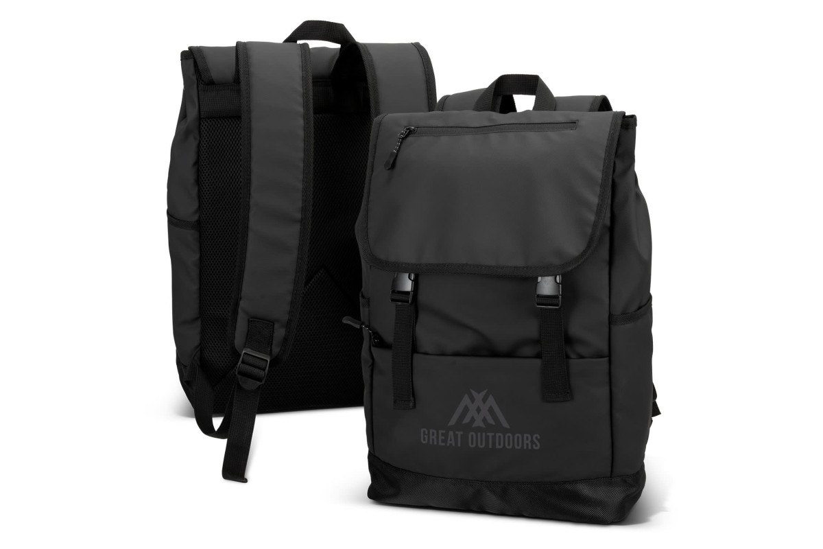 Built for daily commutes and weekend adventures, the Trek Soft-Touch Backpack offers 17L of adaptable storage. It features a stylish flap top with adjustable clip closures, while side snaps allow you to expand or tighten the main compartment as needed. Made from 600D polyester with a water-resistant soft-touch PU coating, it has a large main compartment, an internal sleeve for devices up to 16.5", a zippered front pocket, and two large side pockets. Designed for all-day wear, the padded back and shoulder straps provide lasting comfort on the go.