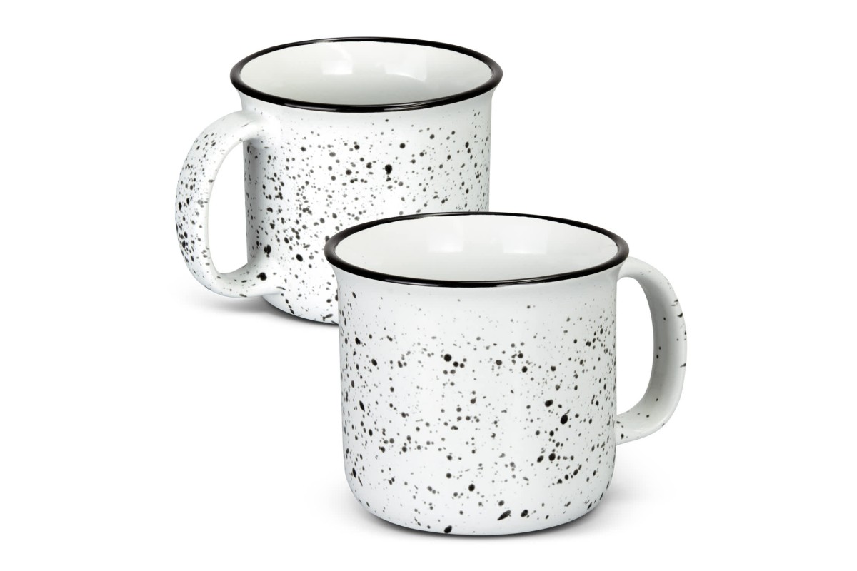 Stylish 400ml ceramic mug featuring a solid gloss glaze finish with contrasting trim and speckled pattern that makes each mug unique. The comfortable handle and ample size make it perfect for enjoying your favourite beverage. This white speckled ceramic mug is more than just a drinking vessel - it's a daily dose of joy and style, making it an ideal gift.