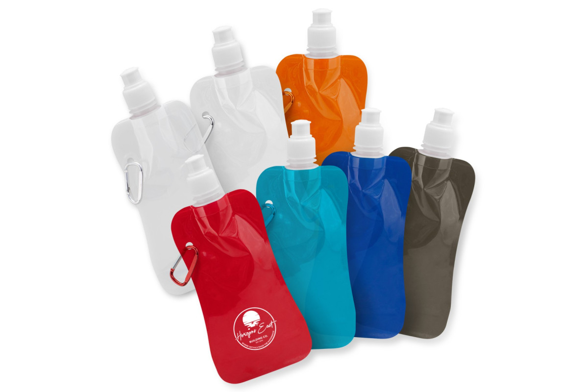 Affordable 450ml water bottle which collapses when it is empty and takes up very little storage space. It is manufactured from PET and is ideal for personal hydration on the go. The bottle has a large branding area, a handy carabiner clip and a sipper lid. This product is not dishwasher safe and handwashing is recommended.