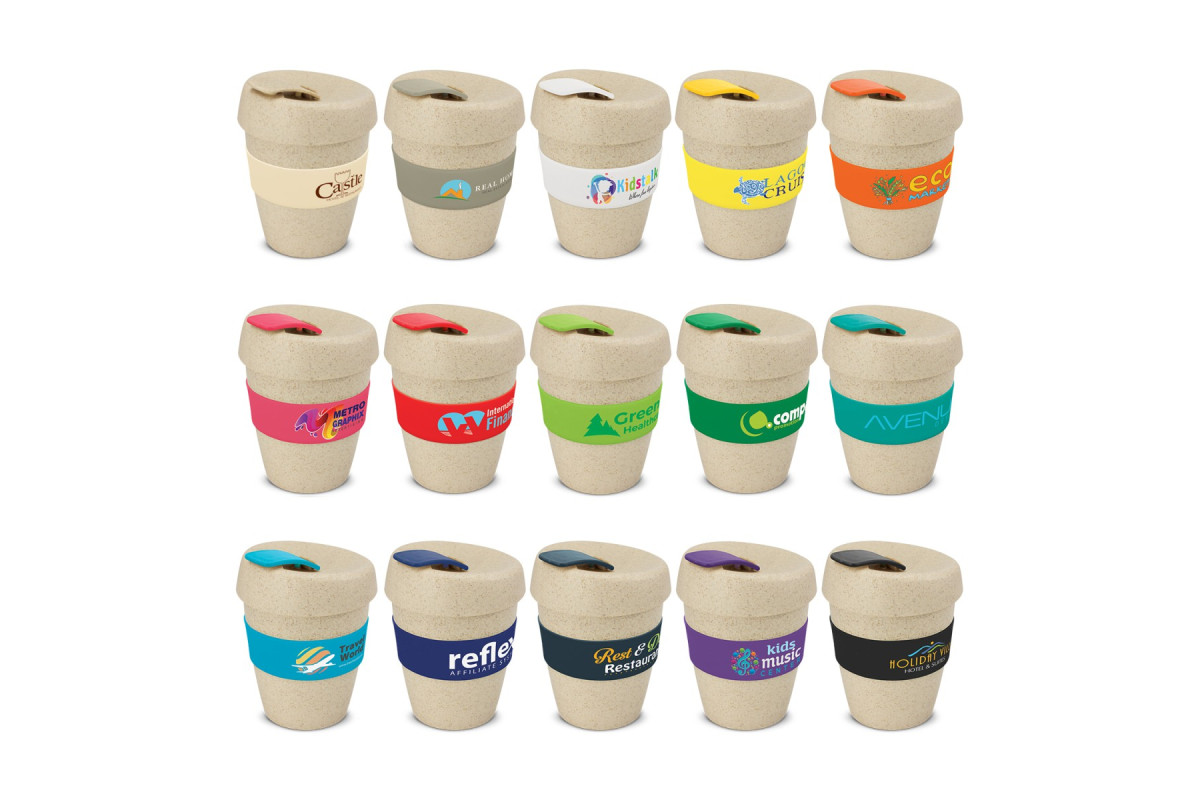 Design inspired 350ml reusable coffee cup that has an incredible story to tell. It is manufactured from a 60/40 blend of BPA-free polypropylene and natural rice husk fibre. It has a heat-resistant silicone band and a secure screw on lid with a splashproof flip closure. The flip closure and band can be mixed and matched in any colour combination from the standard colours. Up to five different colour combinations are included in the price and more are available for an additional charge. An optional natural gift box is available on request. This product is not dishwasher safe and handwashing is recommended. Express Cup - Natural is protected under New Zealand Design Registration No. 419451 and Australian Design Registration No. 361937.
