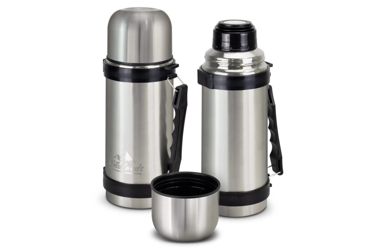Functional 1L stainless steel, double wall vacuum flask that keeps drinks cold for 24 hours or hot for up to 12 hours. Fitted with a black carry handle for easy transportation and a screw on cup. The flask engraves to a natural etch and is BPA-free. This product is not dishwasher safe, and handwashing is recommended. Features: * Functional 1L stainless steel flask with vacuum insulation * Black carry handle for easy transportation * Screw on cup * Presentation: Black gift box