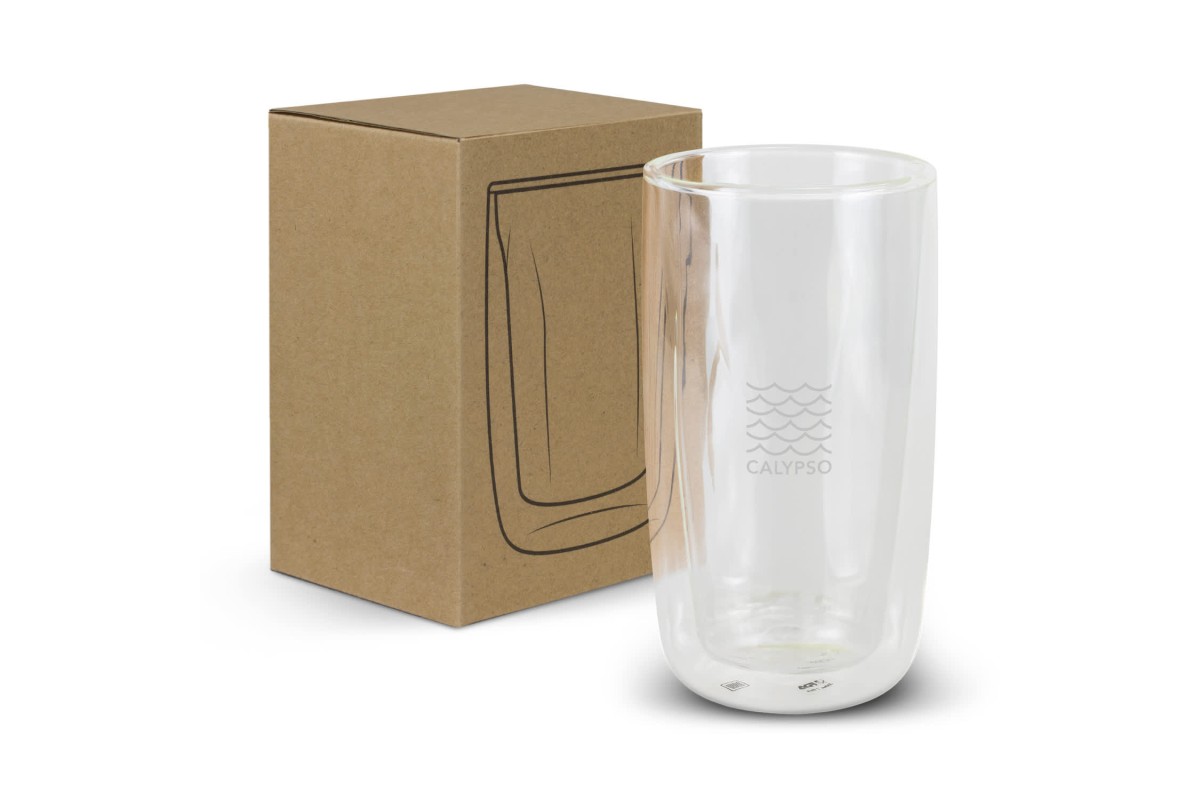 SPICE strive to create extraordinary products that have a positive impact on the planet. Their Calypso range is no different - this 330ml double walled glass is made from 100% recycled borosilicate glass with GRS certification. With an ergonomic design featuring an octagonal inner wall, the lightweight, shatter-resistant glass will keep drinks hot or cold for longer. This product is 100% carbon neutral to delivery and is presented in a natural gift box with SPICE branding.
